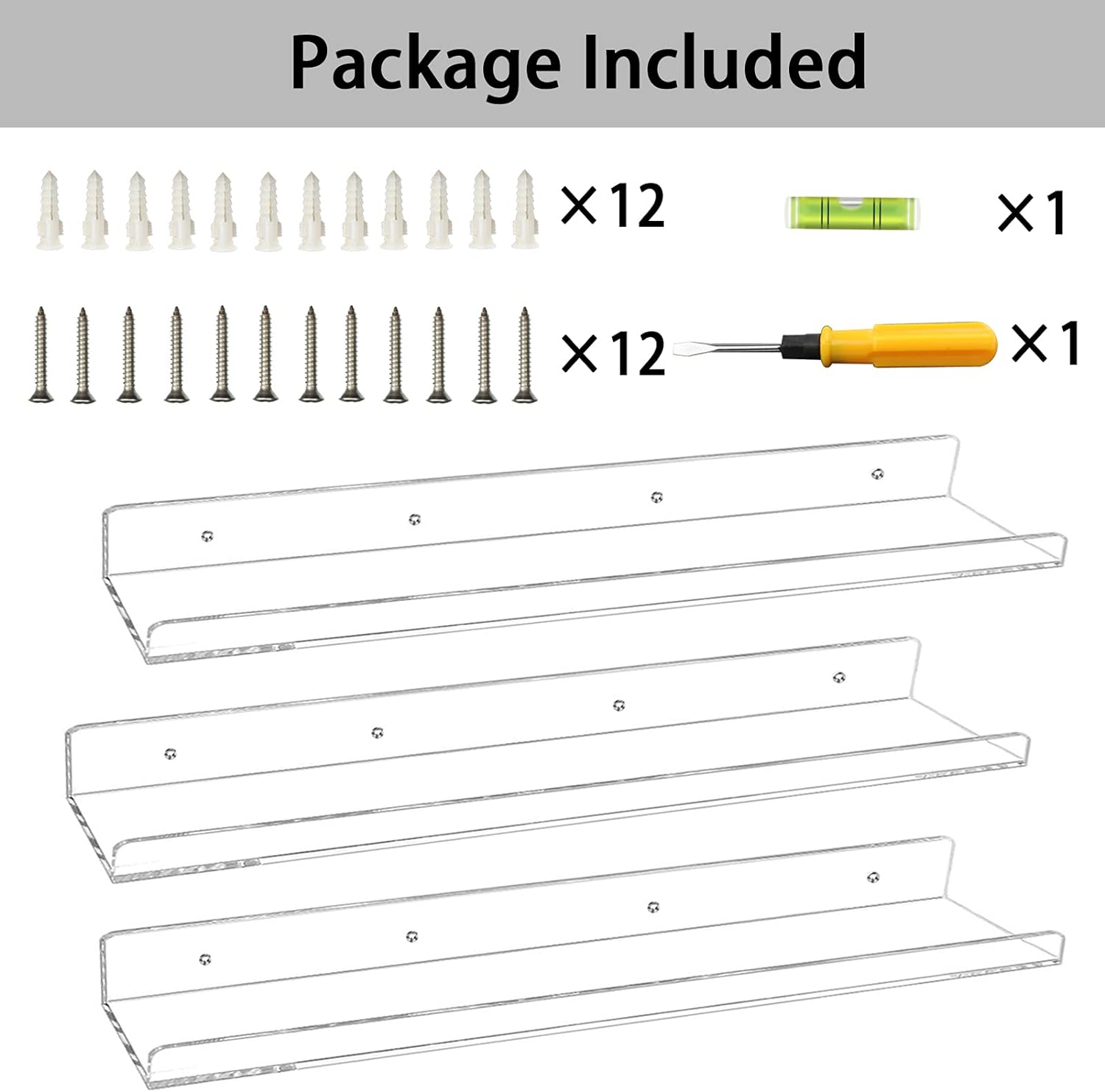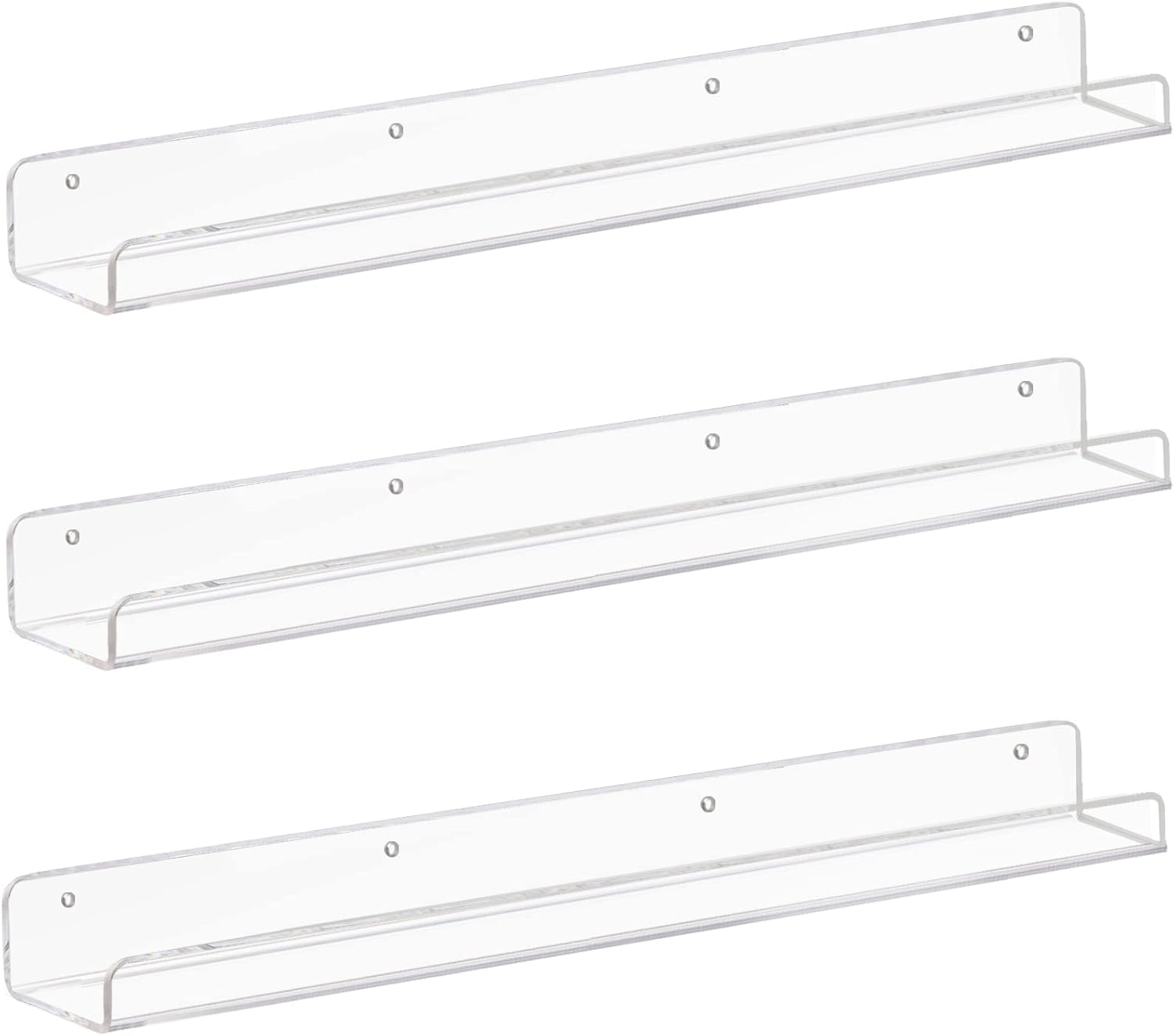 Weiai Clear Acrylic Floating Shelves 24 inches, Wall Bookshelf for Kids, Transparent Book Shelf Ledge for Wall, Set of 3