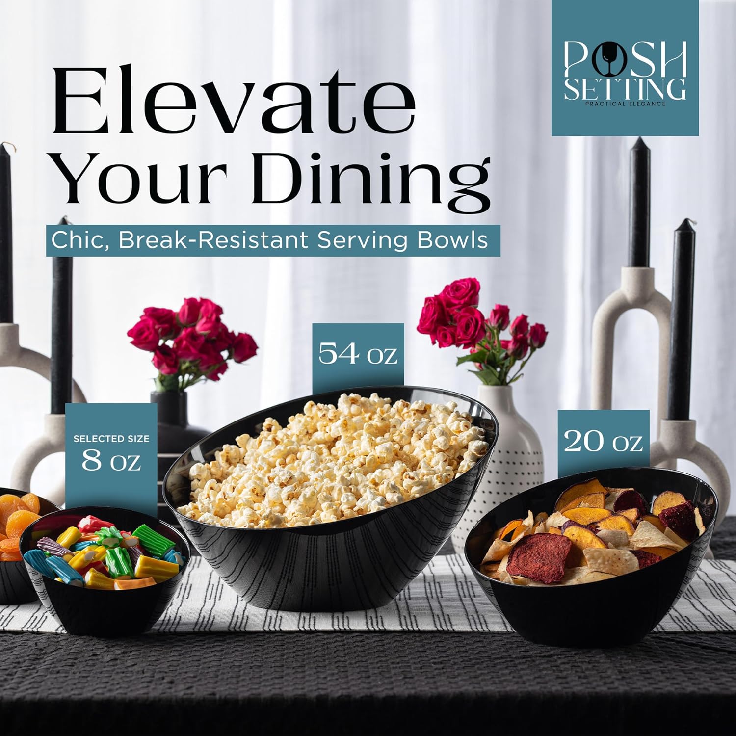 Posh Setting Black Plastic Serving Bowls Disposable - Angled Bowls - Angled Candy Bowl - Plastic Snacks & Chip Bowls for Parties - Black, Gold & Clear, White Serving Dishes, 8 OZ, 5 Pack