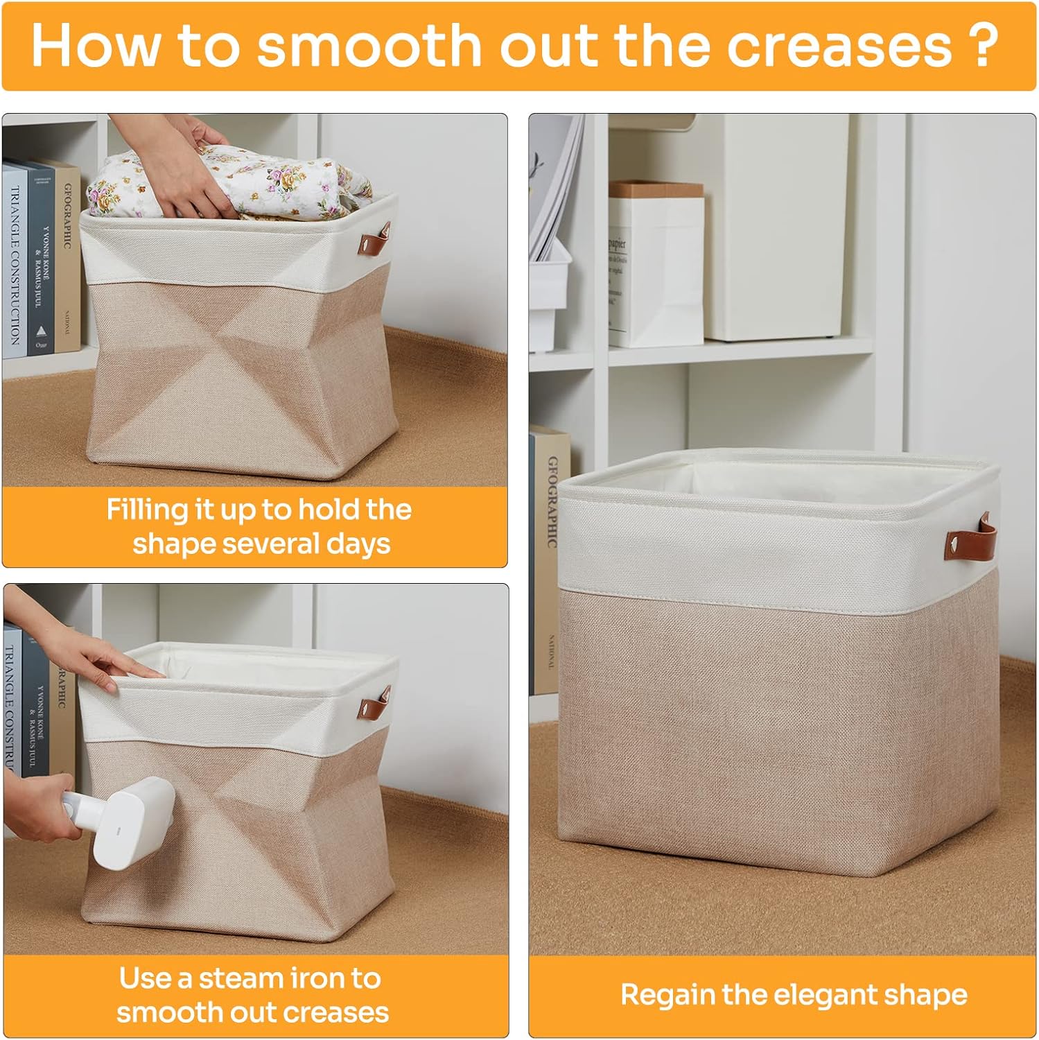 DULLEMELO Fabric Storage Cubes,13 inch Cube Stroage Bins for Empty Gift Basket,Toy Nursery Storage Linen Closet Organizers and Storage Baskets Shelves Bins(White&Khaki)