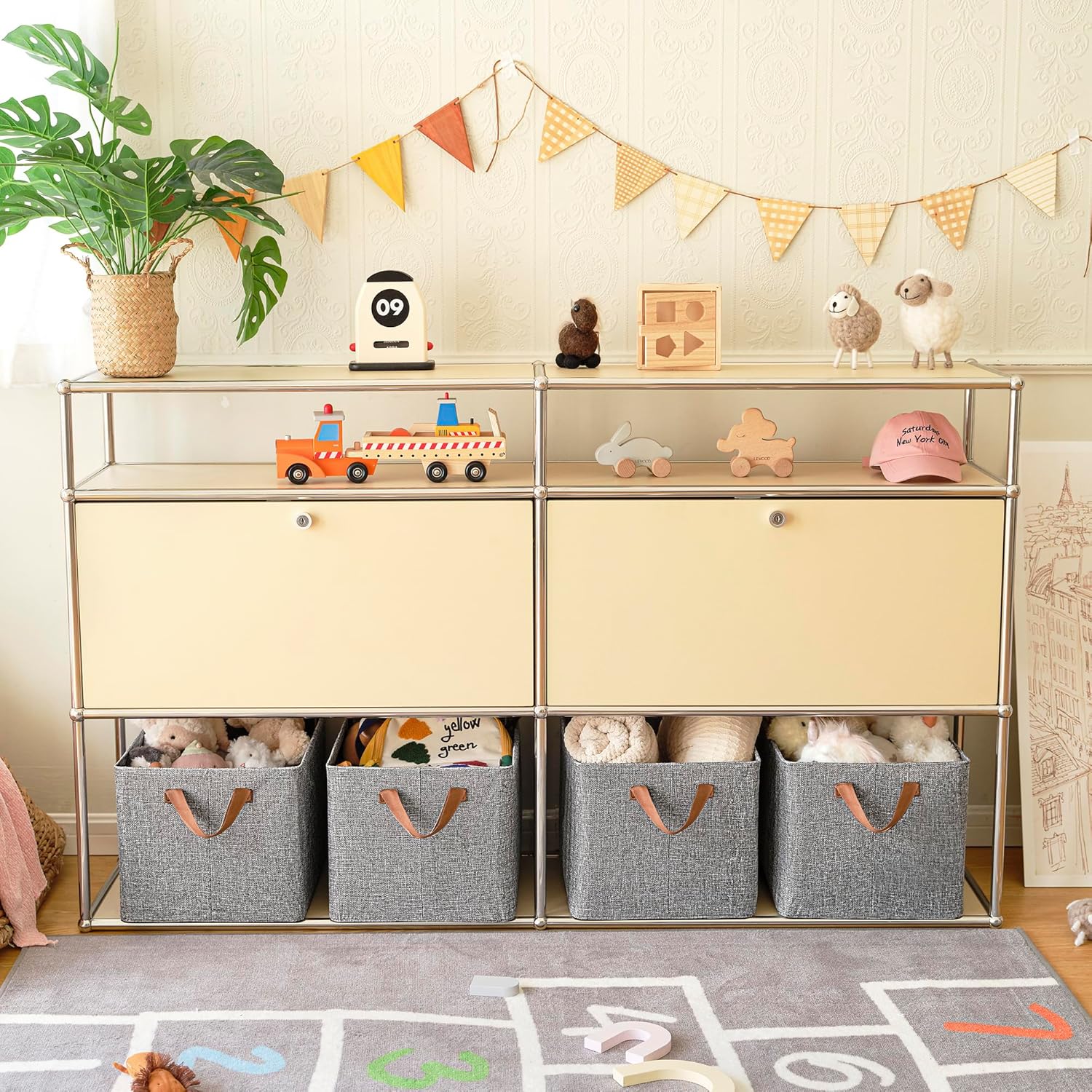 GRANNY SAYS Closet Storage Baskets, Collapsible Fabric Storage Bins with Metal Frame, Clothes Organizer Bins, Extra Large Baskets for Shelves, Gray, 4-Pack