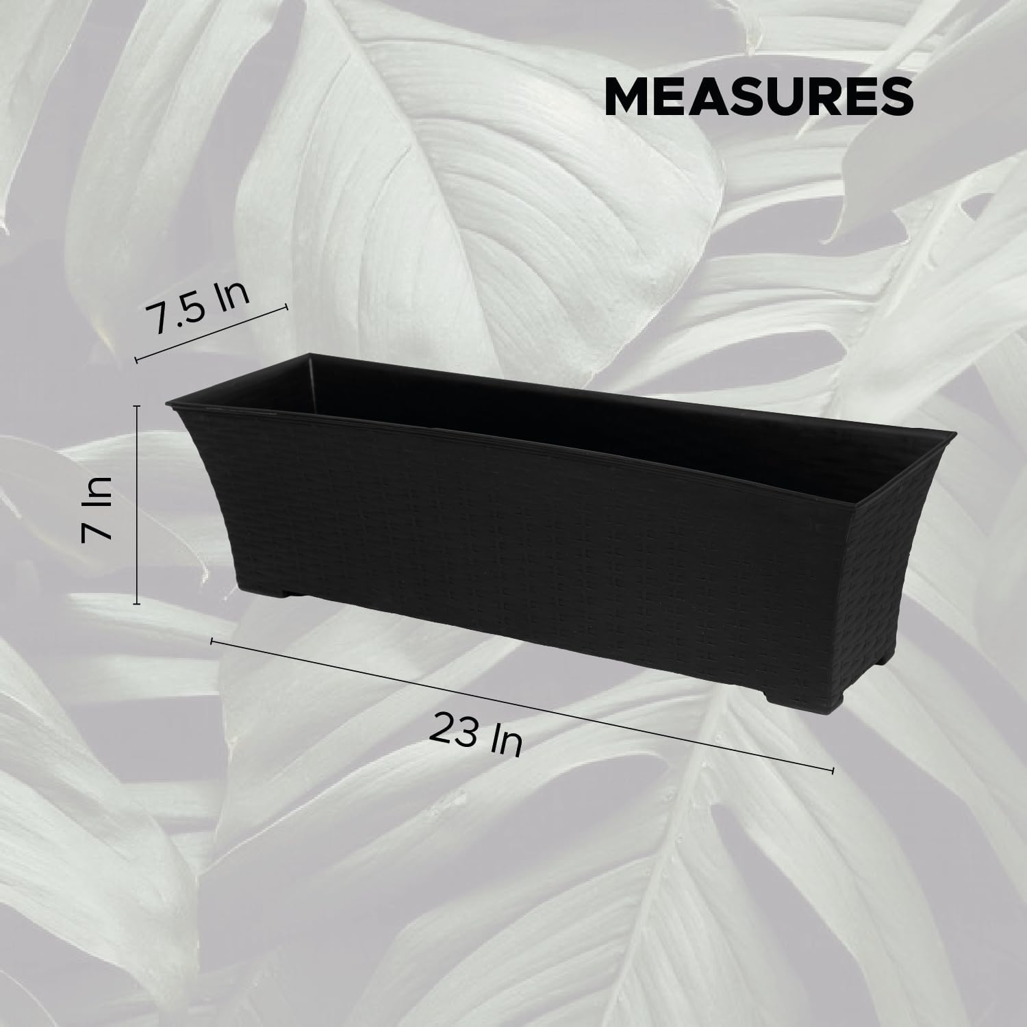 Elly Décor Set of 2 24x8 Rectangular Modern, Resistant and Self Watering Planter with Rattan-Like Finish, 24", Gray