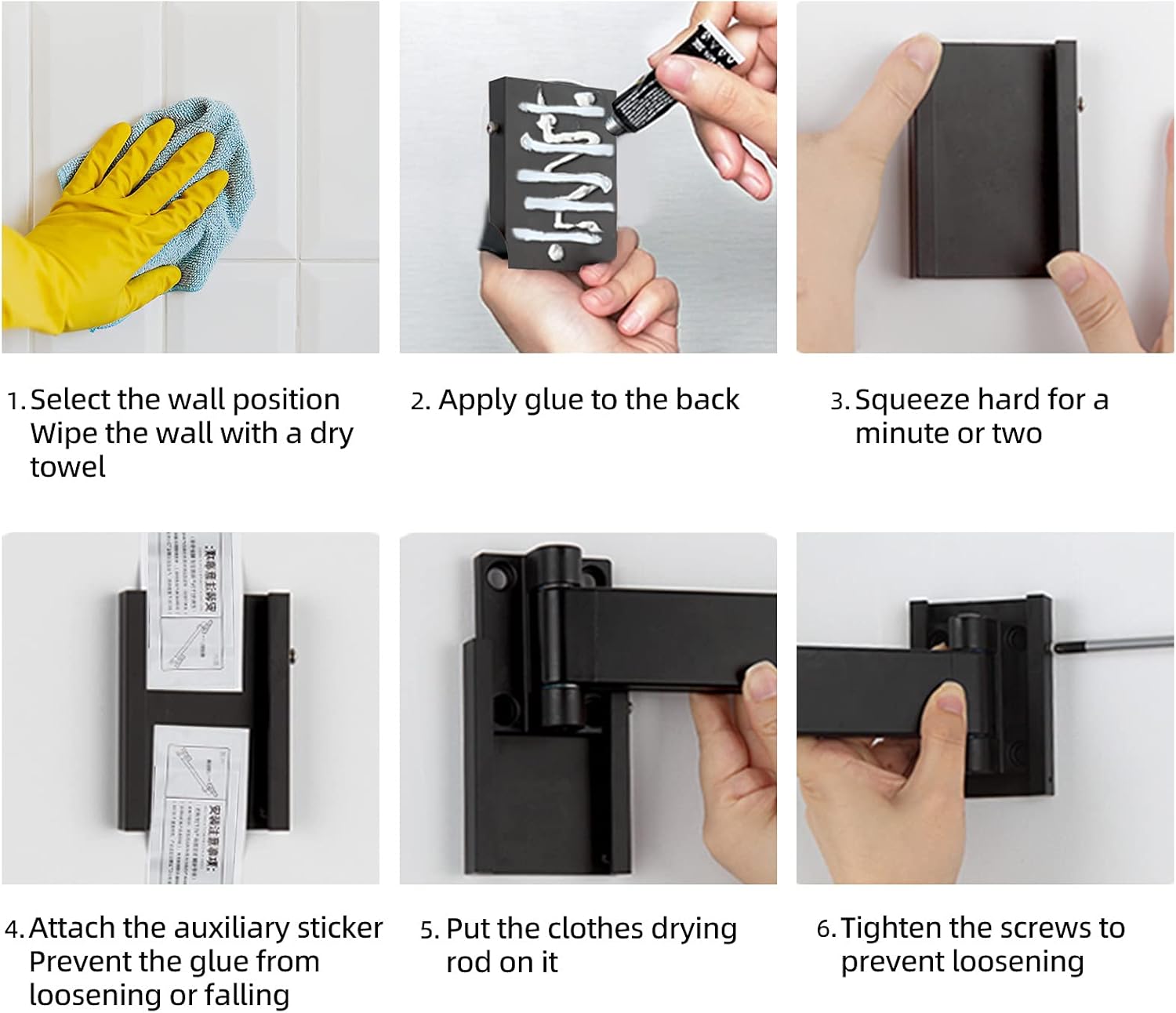 - ✅ Punch-free & Drilling Installation to Choose -- Whether you prefer a punch-free installation (With No-Drill Adhesive: Clothing Weight⩽60 LBS) or traditional drilling, our clothes drying rack wall mounted offers simple installation methods suitable for various surfaces, including smooth ceramic tiles, ensuring it fits perfectly in your space. (Tips: Please make sure the wall or wood board is solid before installation.)