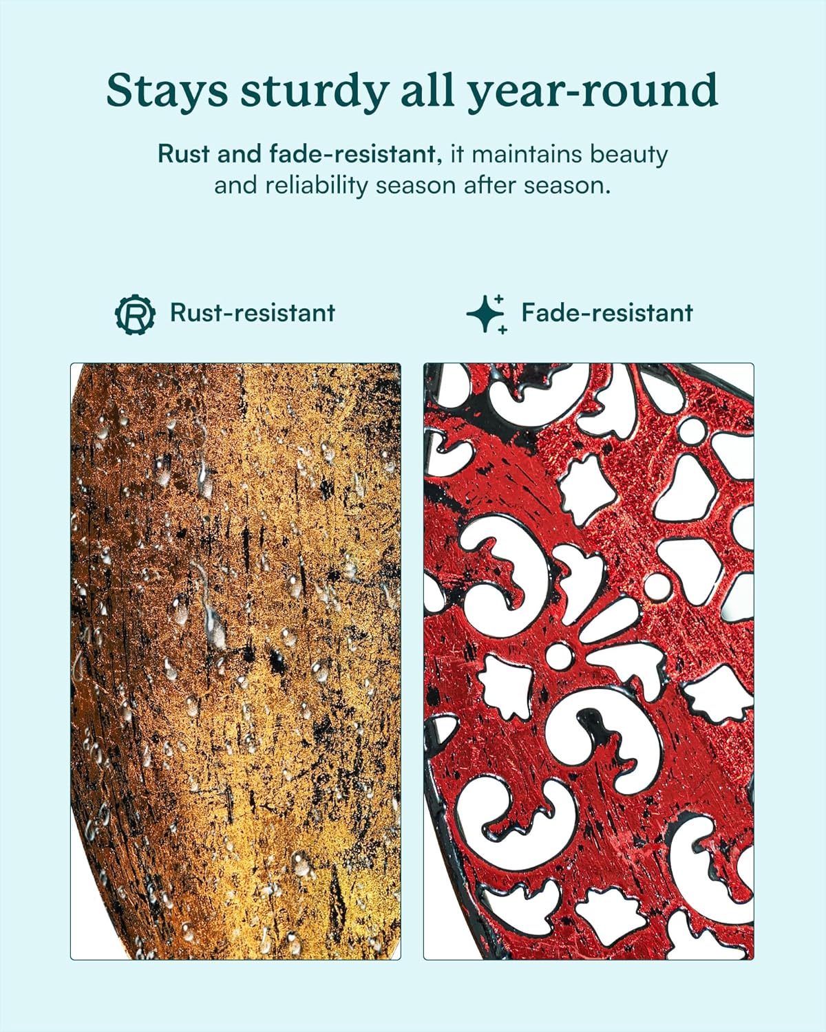 - SOLAR OUTDOOR METAL DECOR: Made of sturdy metal with protective coating finishes. UV, RUST, and FADE RESISTANT. The all-season decorative spinner can be cleaned easily to keep its reflective shine and rustic appearance. Long-lasting use.