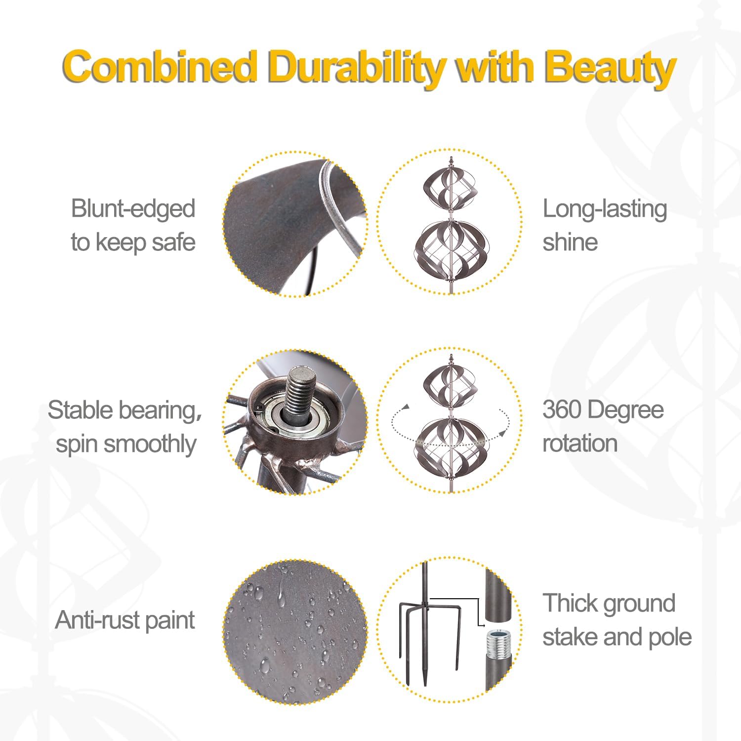 - 【Combined Durability with Beauty】LimeHill metal garden wind spinners are crafted from sturdy material to last for seasons to come, extremely detailed and impeccable Craftsmanship.