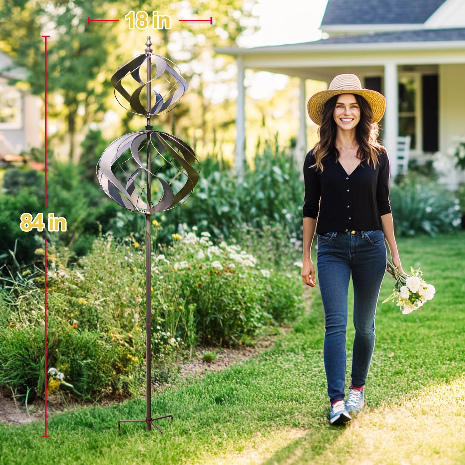 - 【Easy to Assemble】Our yard garden wind spinner no plugs or cords are needed, it is easy to assemble with the instruction. Can display at your front door or backyard garden, extra large size: 24″ W x 24″ D x 84″ H, easy to draw other's attentions.