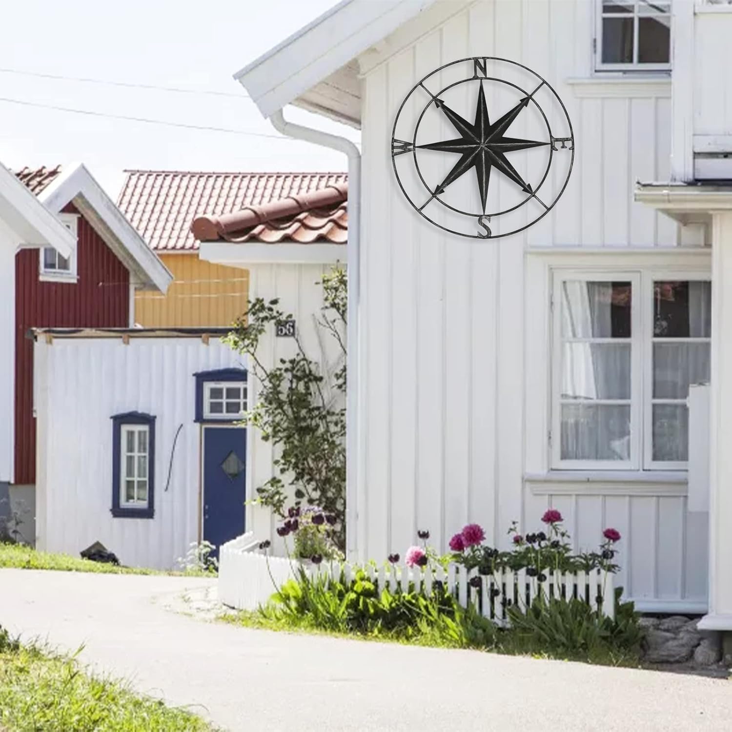 aboxoo Round Metal Compass Decorative Compass Metal Wall Art Hanging Wall Sculpture 22.8 Inch Black Diameter Farmhouse Decor Indoor or Outdoor Sign