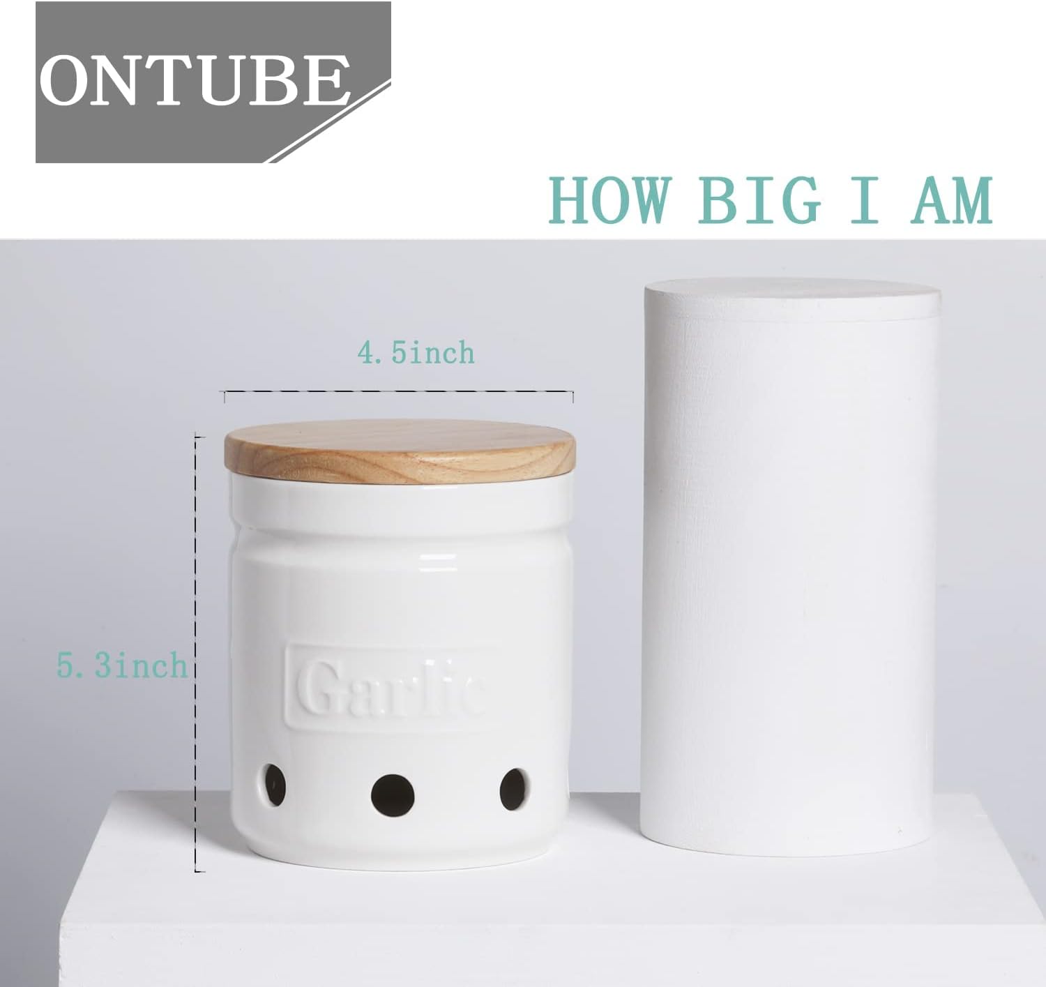 - HUMANIZED DESIGN : ONTUBE Garlic Keeper's size is 4.5"Lx4.5"Wx5.4"H which can easily hold 3 to 4 heads of normal size garlic. Because it is deep enough, it can even hold 2 potatoes