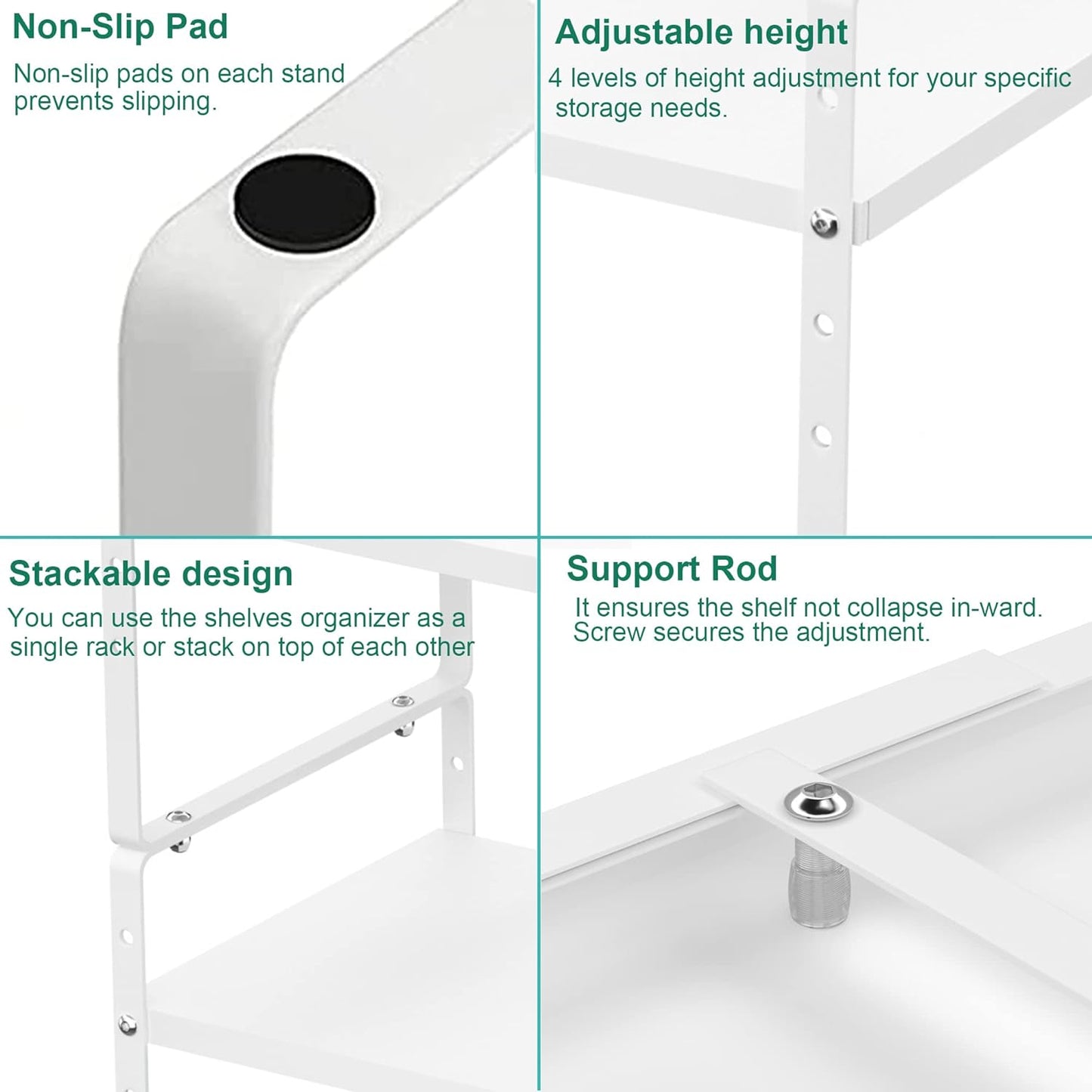 - 【Multifunctional storage】--This shelf will double your space! It can be used in various places in your home, including kitchen cabinets, desks, pantry, bathroom cabinets, closets, countertops, under the sink or any place that needs extra space to maximize storage and organization.