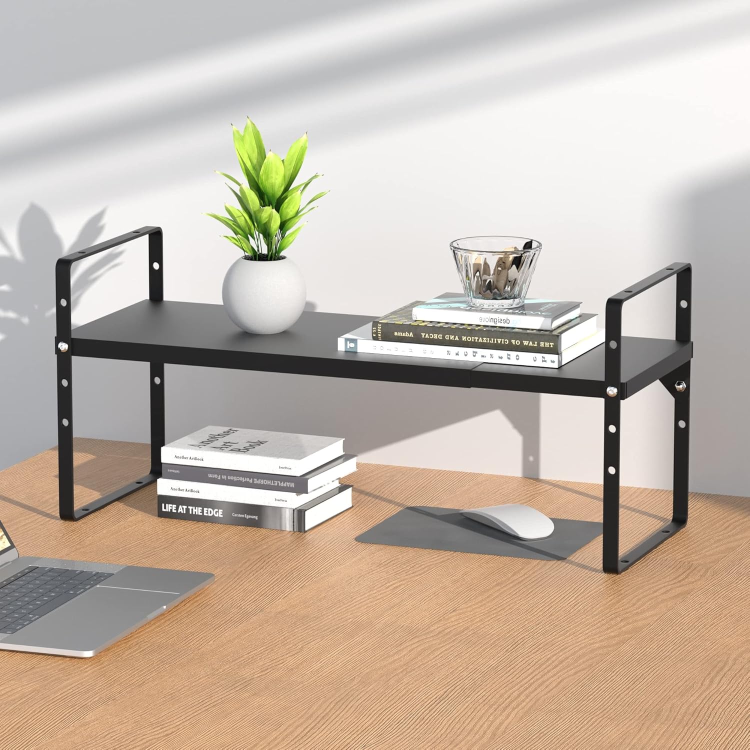 - 【Expandable and stackable design】--The Adjustable Countertop Organizer (collapsed) each measures 16.7" L x 10.2" W x 9.8" H, expands from 16.7" to 27.2" length. You can also stack two shelves together to create a two-tier storage space.