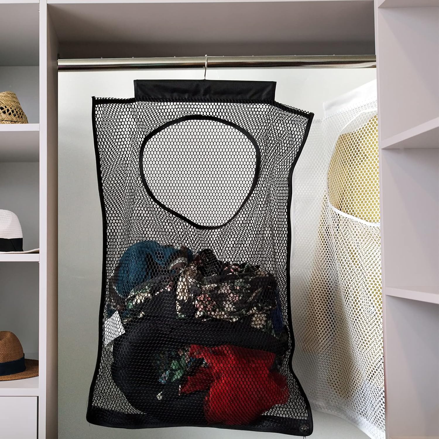 Hanging Mesh Laundry Hamper (30in*20in*2in) Large Dirty Clothes Bag, Can Be Used Behind The Door & Closet & Caravan& Bathroom (Black)