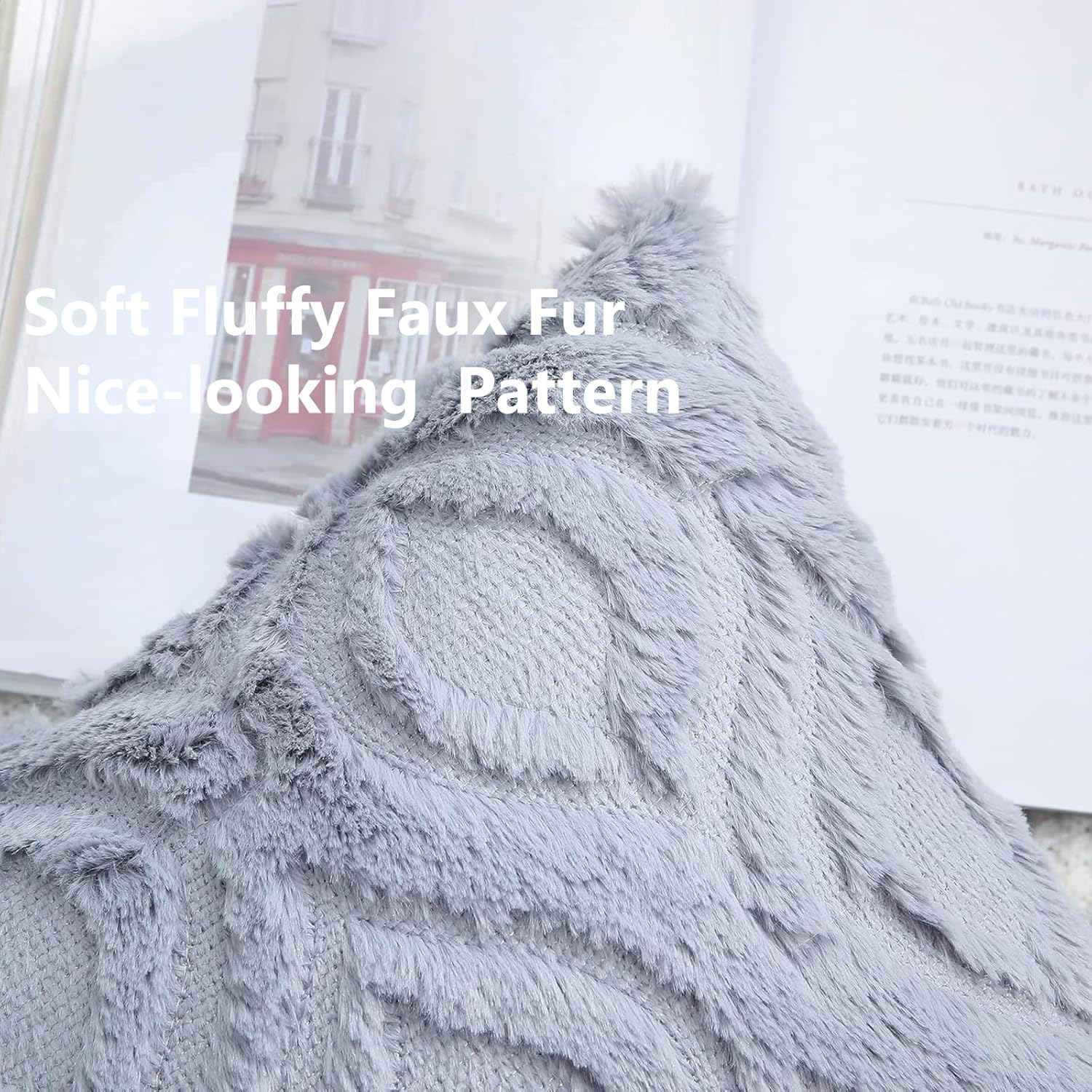 decorUhome Fall Throw Pillow Covers 22x22 Inch Set of 2, Soft Plush Decorative Faux Fur Blue Grey Solid Couch Pillow Covers, Accent Farmhouse Neutral Square Euro Pillow Cases for Sofa Bed Living Room