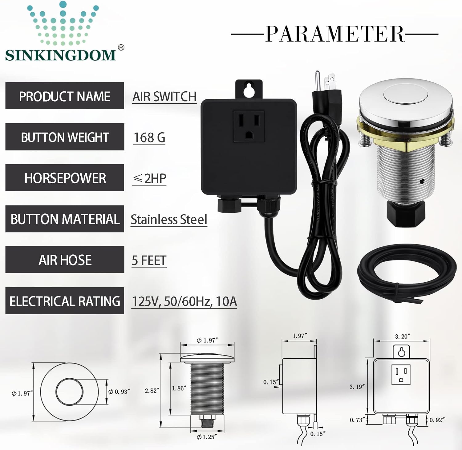 Garbage Disposal SinkTop Air Switch Kit with Stainless Steel Button,Chrome