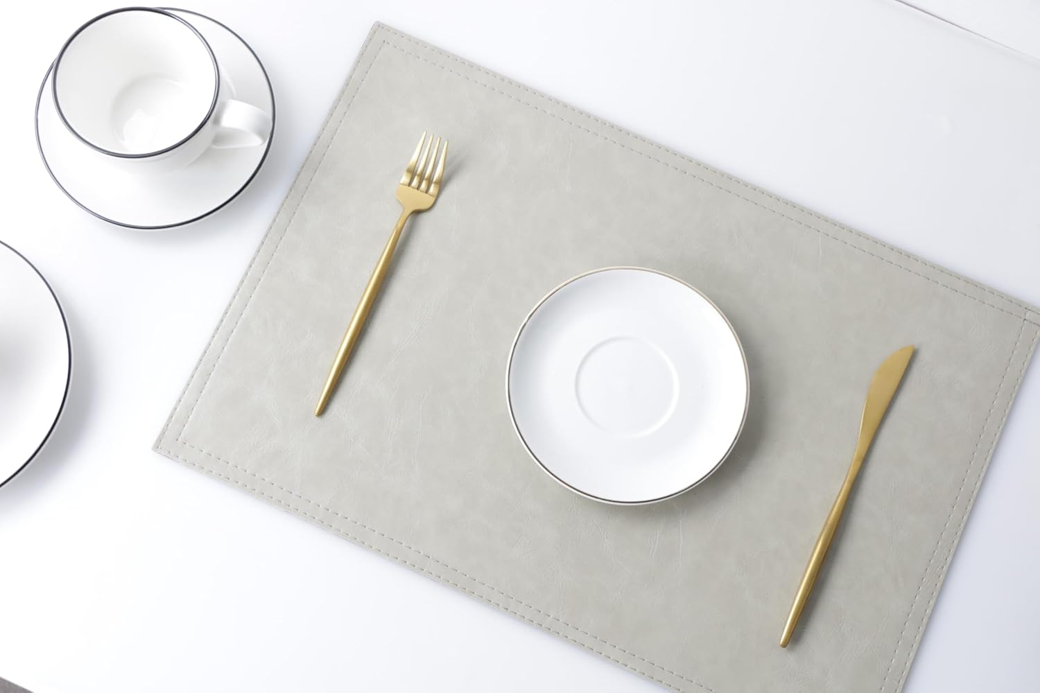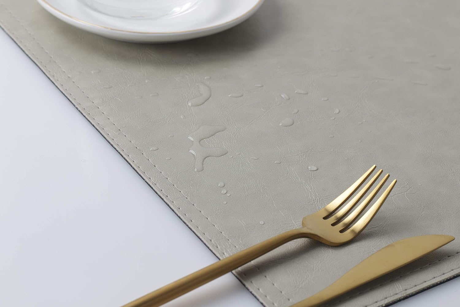 Waterproof PU Placemats, Faux Leather Dining Table Mat, Set of 6, Easy to Wipe Off Scrub Vinyl Mat, Heat & Stain Resistant for Office Conference Table, Home Decor