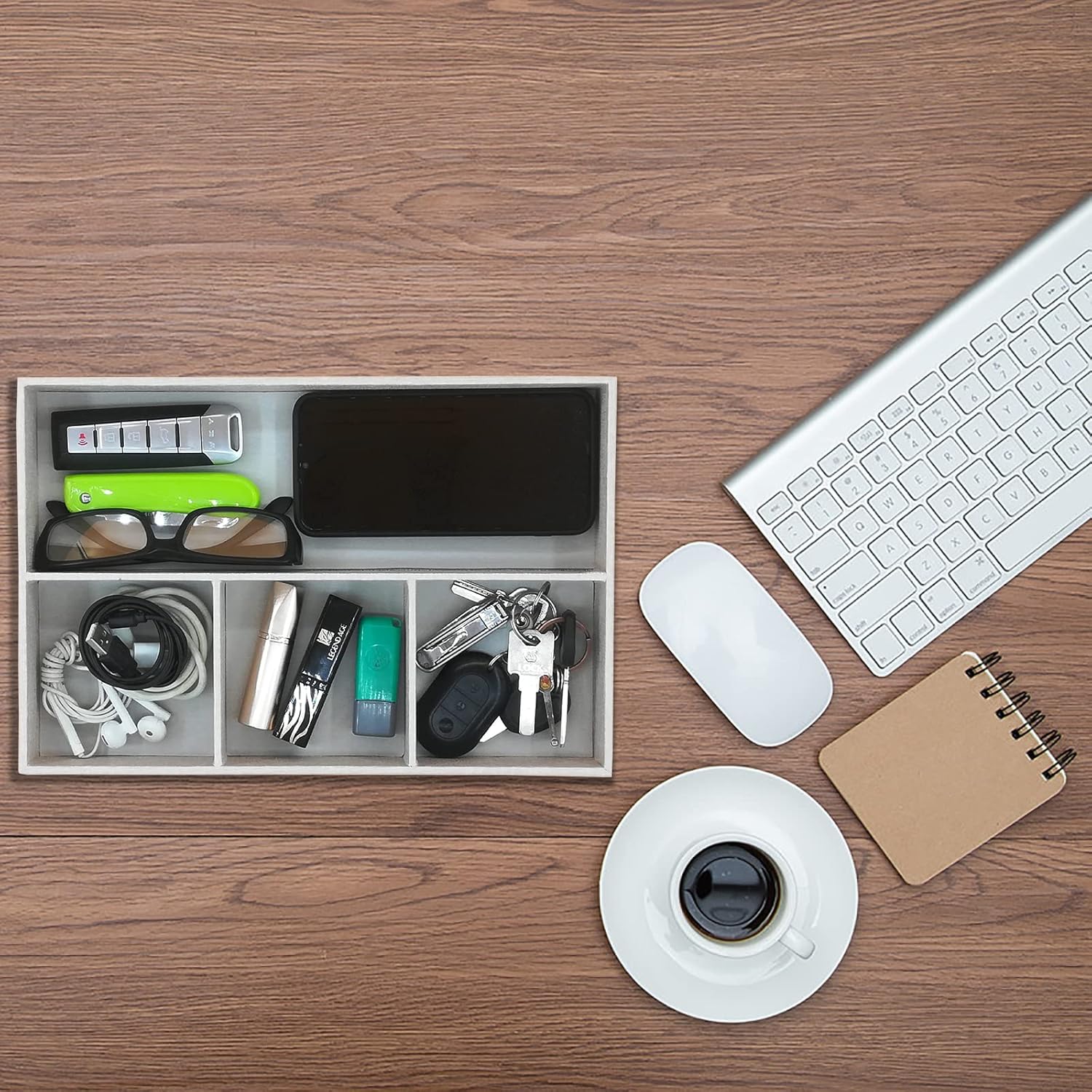 - [Perfect design] 4 compartments, better classification and protection of accessories. The right size will not take up your extra space. Therefore, you don’t need to waste a lot of time searching for misplaced items. Make your space more tidy and orderly. The perfect daily tray, suitable for your desk, bedside table, dressing table, entrance hall, side table, etc.