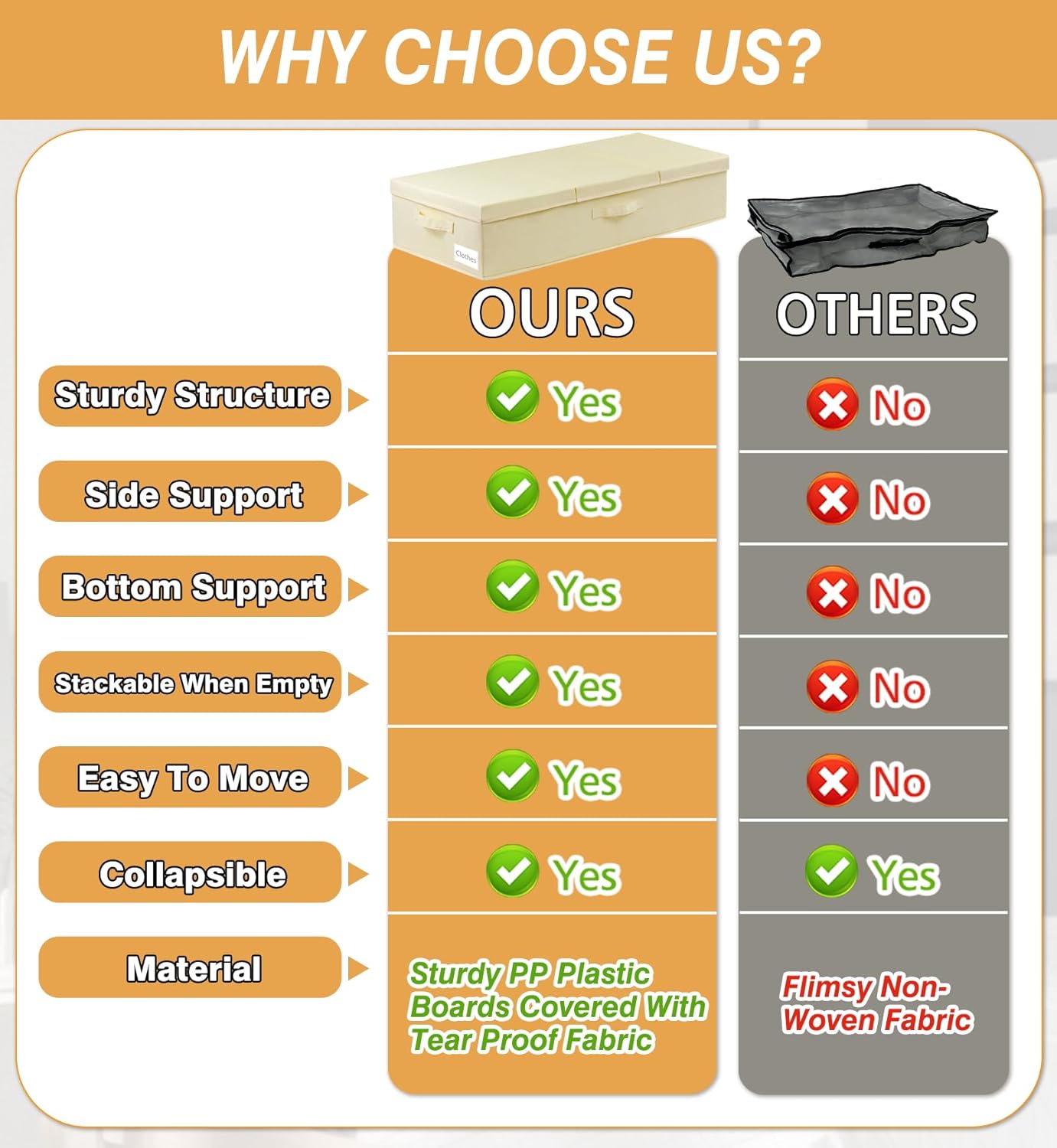 - Style : clothing storage under bed