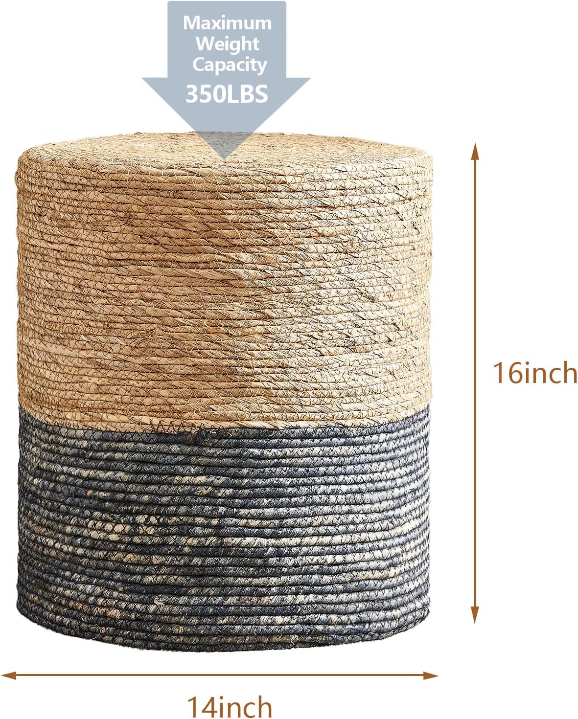 - 100% Handmade Cover: Pouf Ottoman is made of sustainable, and durable natural seaweed & corn husk braid.High-end sewing technology makes natural materials more tight and not easy to open