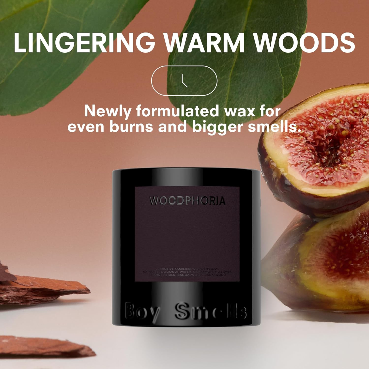 Boy Smells - Woodphoria Scented Candles for Men and Women - 8.5 oz - Soy, Coconut Wax Candle Blend - Aromatic Candles for Home with Fig, Sandalwood and Jasmine - 50-Hour Burn - Cotton Wick