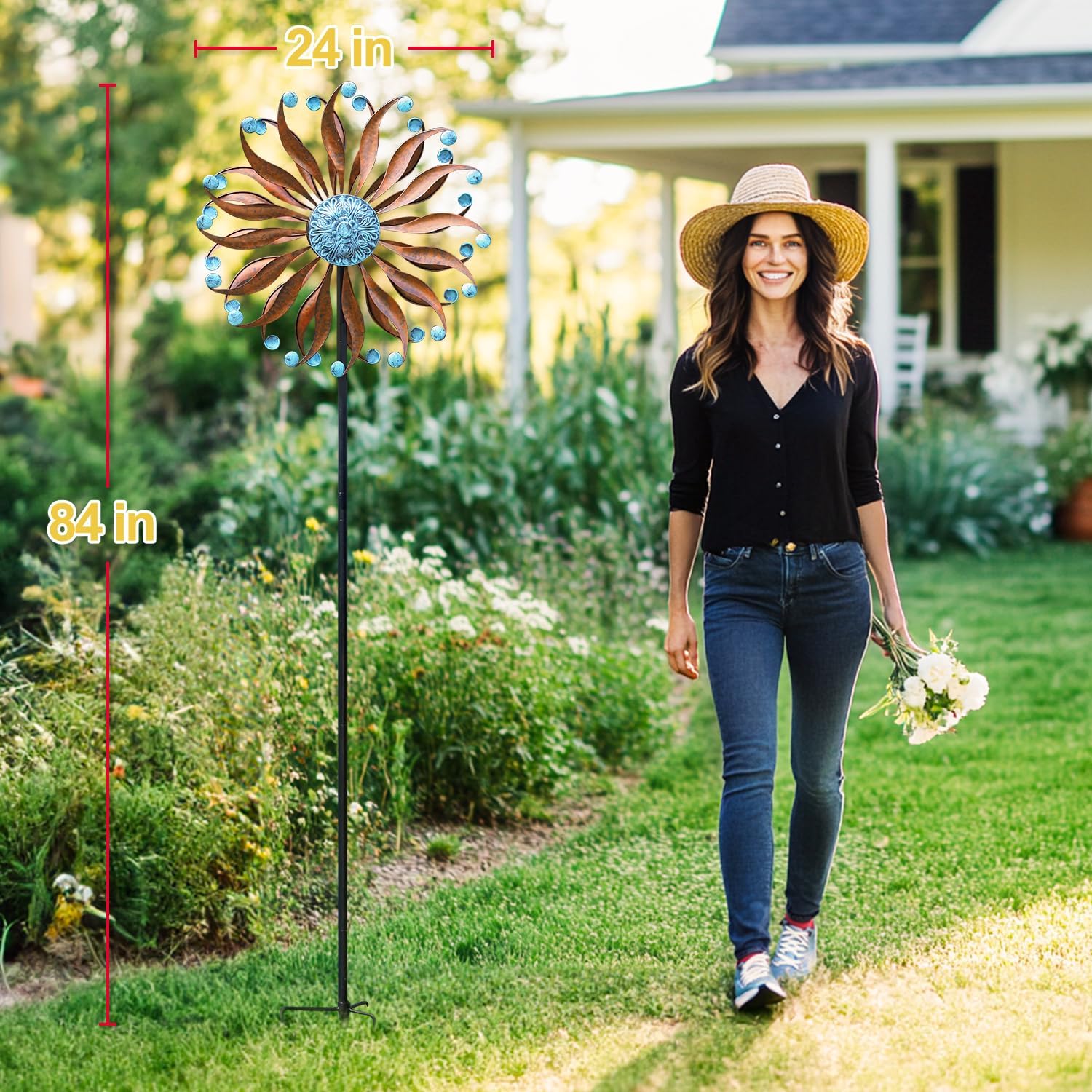 - 【Easy to Assemble】Our garden yard wind spinner no plugs or cords are needed, it is easy to assemble with the instruction. This outdoor wind spinners with size: 24″ W x 10.25″ D x 84″ H, easy to draw other's attentions.