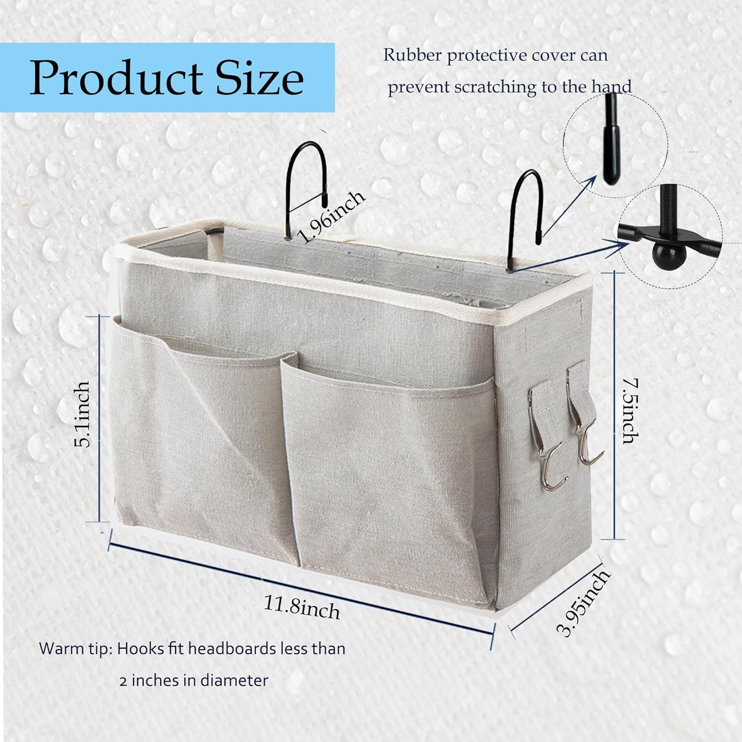 - 【 Premium Material 】TheMagazine Holders is made of Canvas and iron. make it strong and sturdy.The bedside storage caddy has 1 large pocket, 2 small pockets,1 small mesh pockets,and 2 hook up. You can storage your everything you want on bed, everything is well organized and within reach.