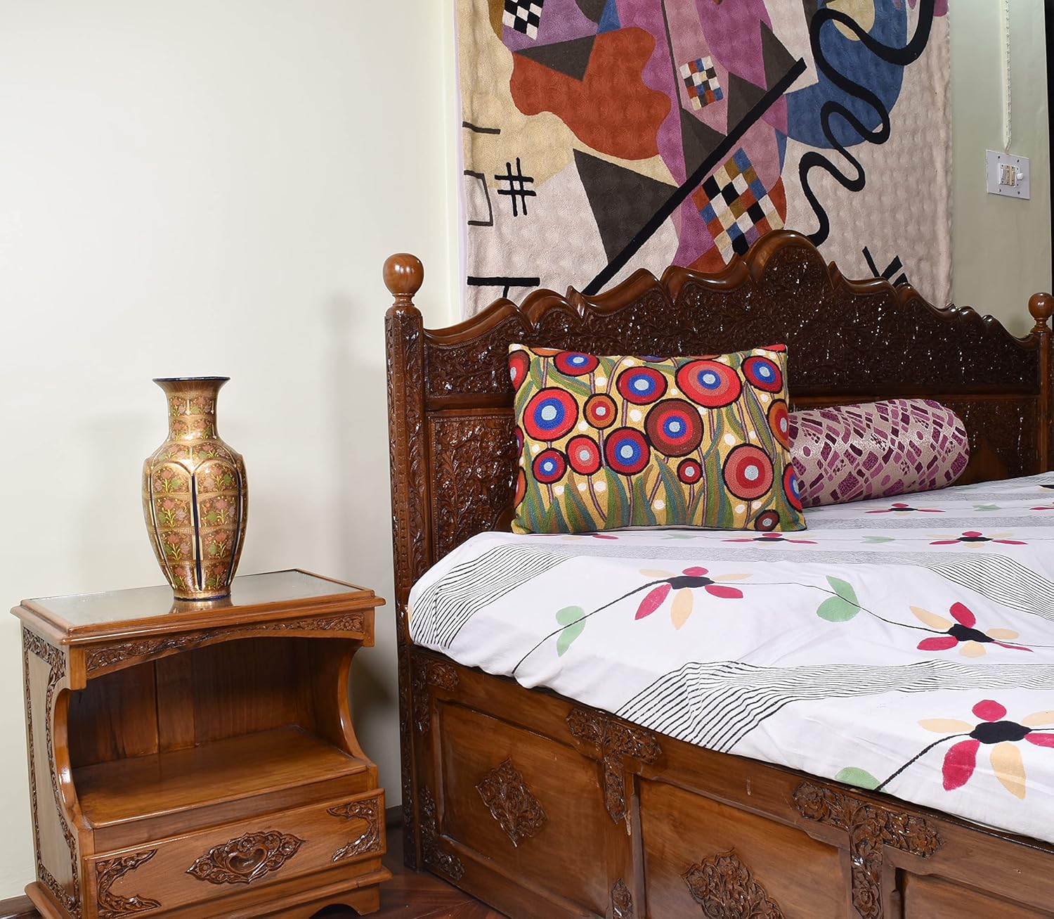 Lumbar Yellow Poppy Floral Pillow Cover Red Poppies Flower Pillows Farmhouse Chair Cushion Floral Poppy Hand Embroidered Size 14x20