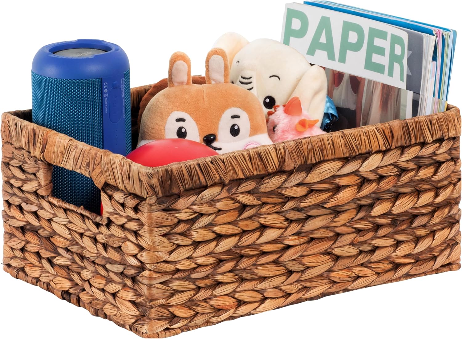 - Our open rectangle baskets are easy for organizing with insert handles. They can be used the same as containers, holders, trays, bins, or boxes anywhere in your home like in the living room, bedroom, bathroom, playroom, laundry room, and kitchen.