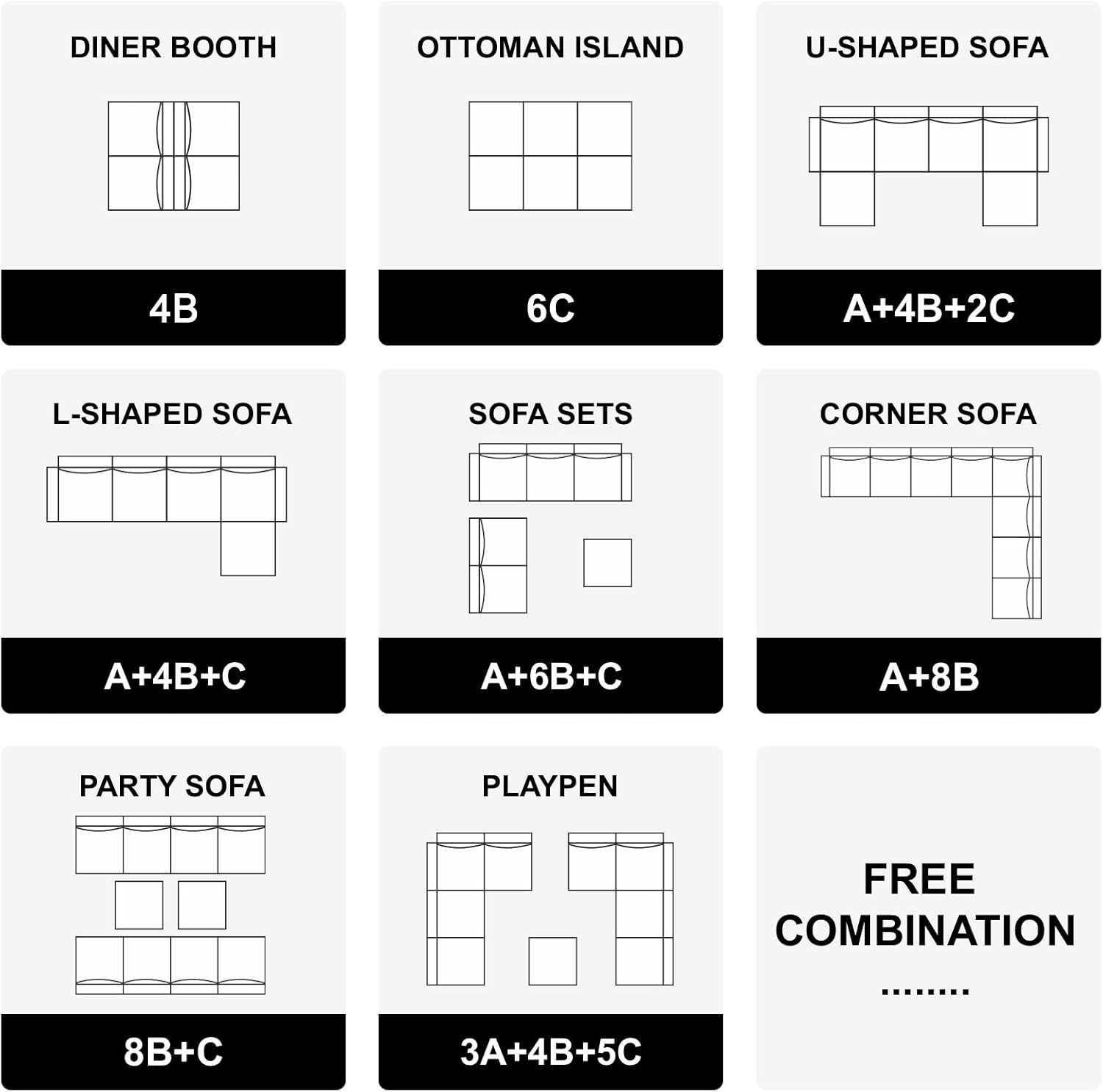 - Invisible Storage Seats: There are storage spaces under each seat of modular sectional sofa, and it is perfect for storing seasonal blanket, extra pillows and any living room accessories you want to easily put away. It is convenient for you to make the room neat and clean. Storage dimensions: 22.40''(L)*22.40''(W)"*5.70"(H)