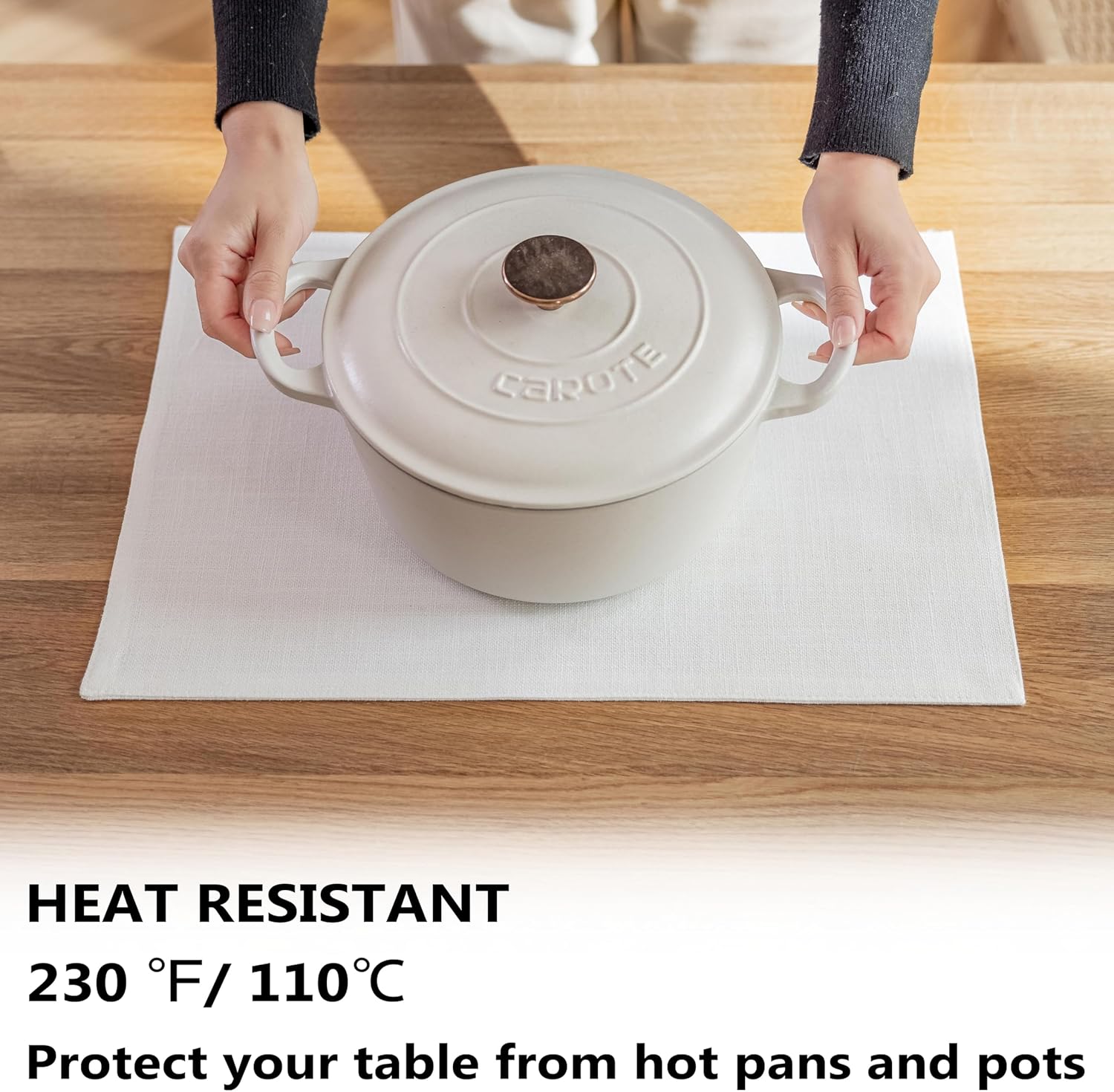 Demetex White Placemats Set of 4 Heat Resistant Cloth Place Mats Linen Dining Table Mats for Wedding Party Decor, Pure White