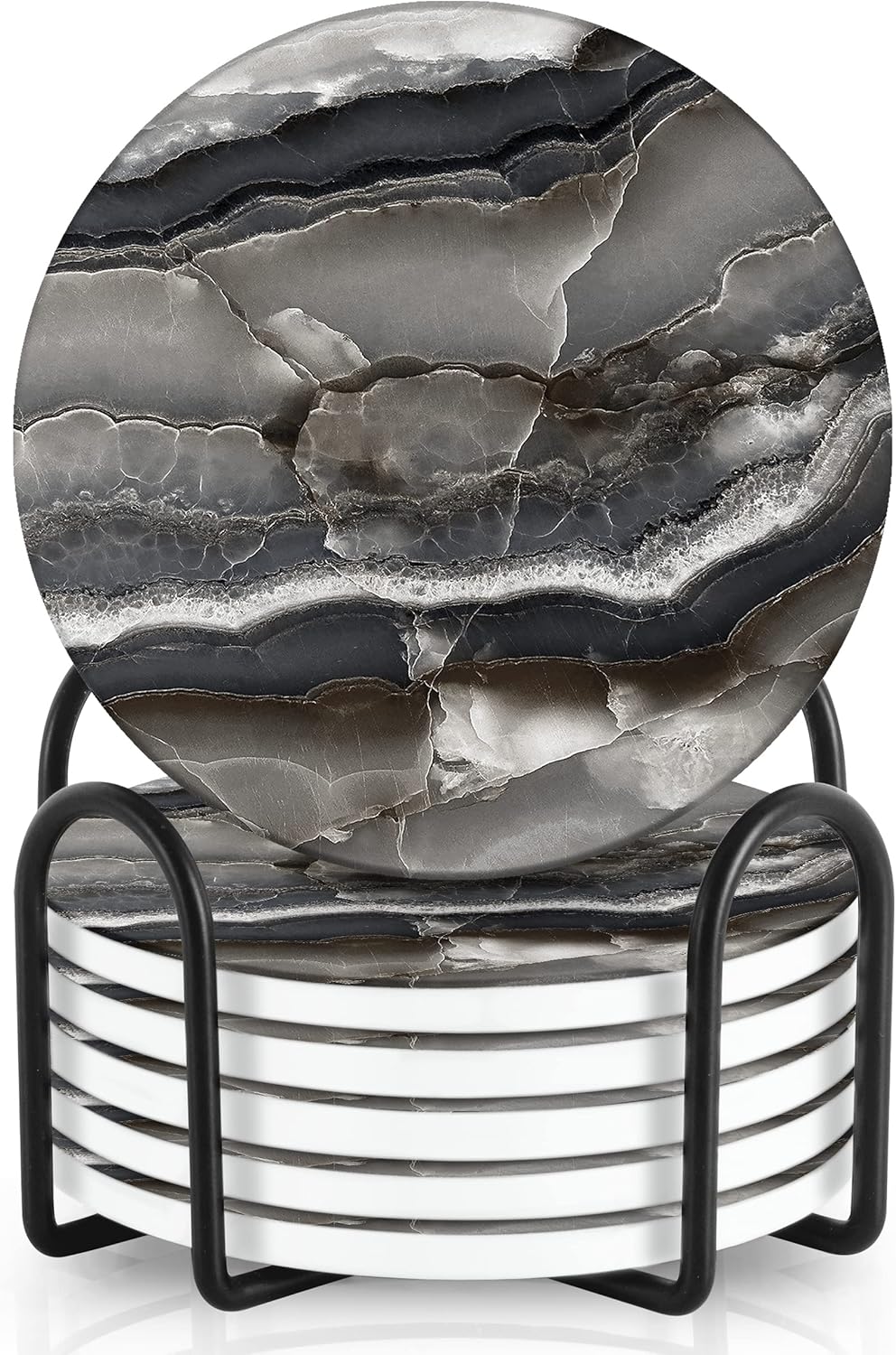 - ✅ LARGE SIZE – Our special material ceramic makes the coasters great for drinking beverage glasses, cups and mugs. Giftable idea for family, friends, women and men. Our wide selection includes black, grey, white, gold, brown, funny, mid century pattern, geometric, geode, rustic, minimalist and industrial style. Protects surfaces and absorbs faster than sandstone, soapstone, tile, cork, silicone, quartz, porcelain or marble.