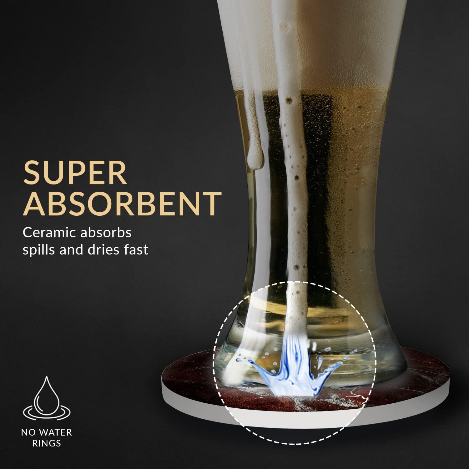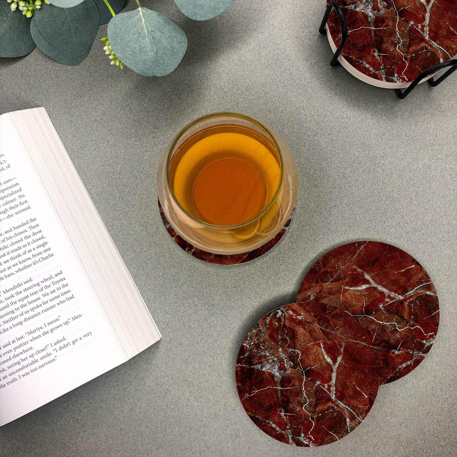 Emerson Coasters for Drinks Absorbent – Natural Stone Drink Coasters Set with Holder, Coasters for Coffee Table, Wooden Tabletop Protection Marble Style – 100% Heavy Duty Set of 6 (Ruby)