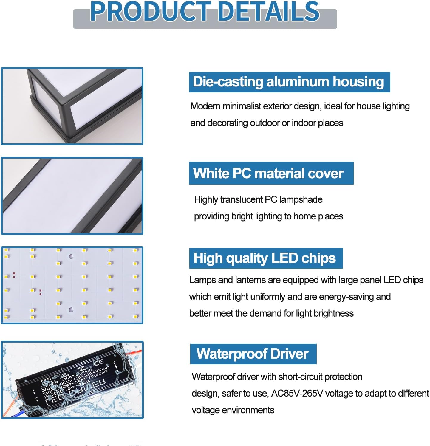 - 【LED Light Source and Drive】Exterior wall light total power:30W, high quality LED chip, 3000K color temperature, 2400Lm, beam soft uniform, low energy consumption;waterproof strip and waterproof driver: short circuit protection design, safer to use;providing enough lighting for your home