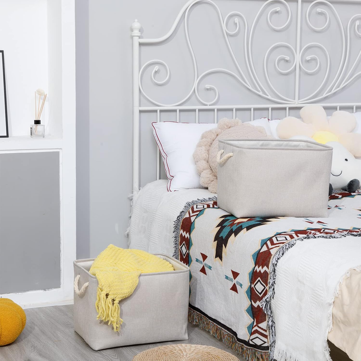 Bidtakay Large Fabric Storage Bins Beige Linen Closet Organizers Set of 2 Baskets for Shelves Clothes Bedroom 16x11.8x11.8 Inch Foldable Organization Baskets for Towels Blankets Storage Dog Toys