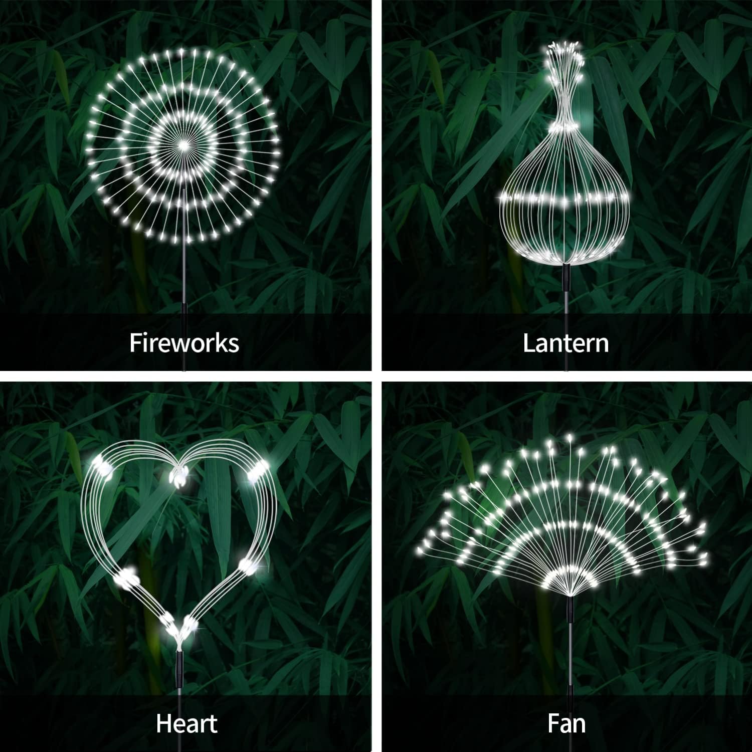- [Upgraded Creative Waterproof Garden Light] Each solar yard light adopts 30 flexible high-quality copper wire and 120 led beads, which can be easily bent into any shape you like, such as fireworks, flowers, ferries wheel, and heart shapes. These outdoor ornaments have colorful lights, they illuminate the flower bed, pathways, lawn, driveway, camping grounds, parties to create a festive and romantic atmosphere.