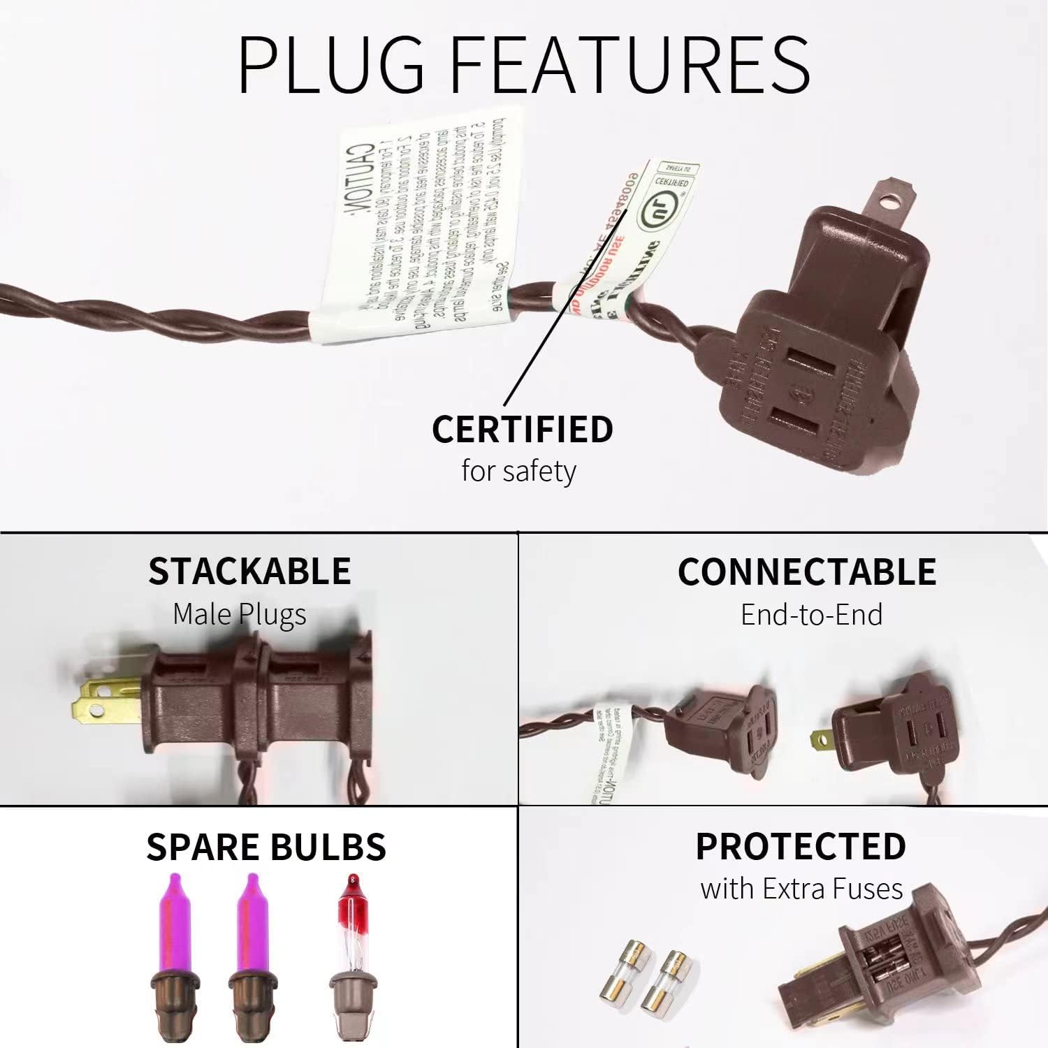 - Safty and Easily: High quality UL certified products ensure the safety of you and your family, Decorate with 100 purple incandescent mini lights with brown wire will give a soft festive feel to your halloween.