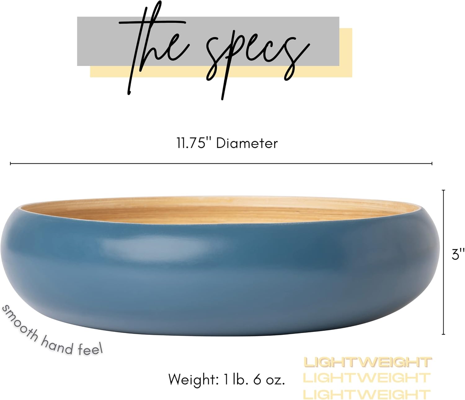 Fruit Bowl For Kitchen Counter, Decorative Bowl, Large Serving Bowl Or Fruit Basket For Kitchen Spun Bamboo (Blue)