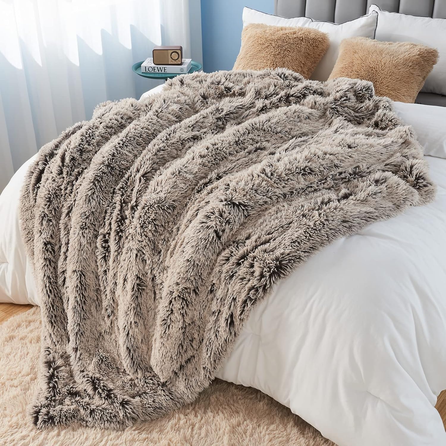 GONAAP Fuzzy Faux Fur Throw Blanket Frosty Brown Super Soft Cozy Plush Fuzzy Shaggy Blanket for Couch Sofa Bed (Frosty Brown, Throw(50"x60"))