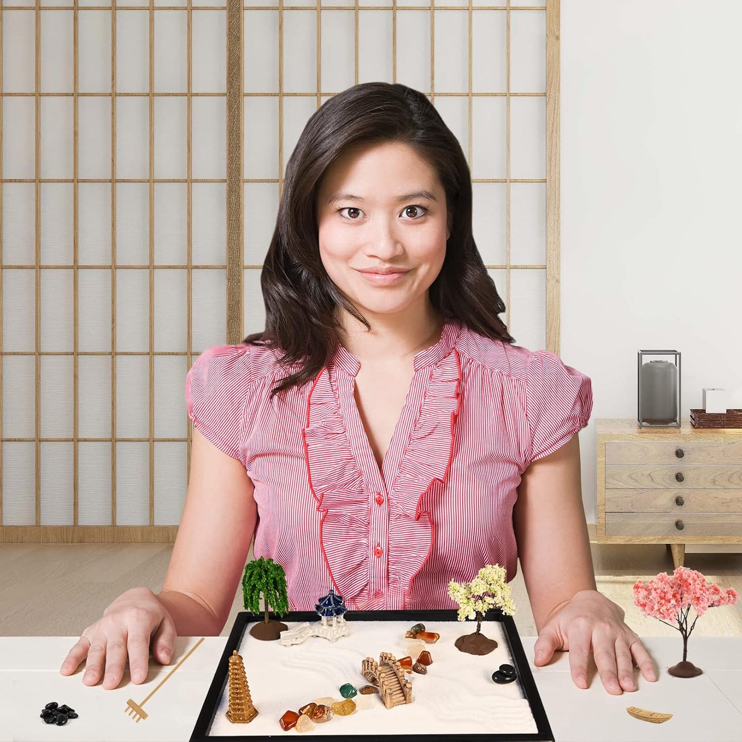 - Wonderful High-end Gift : treat yourself or bring peace and joy to a loved one. Japanese zen garden for desk; gorgeously packed with elements of inner peace. Delightful luxury zen gift set