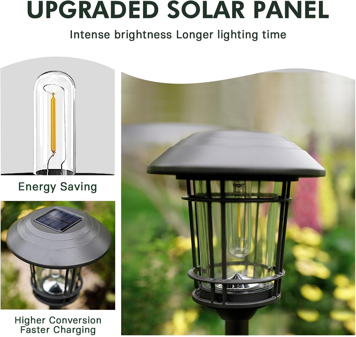 - SOLAR POWERED: The Edison-style and solar powered light bulbs are bright and cast a soft, cozy glow to your path. With warm light design our solar path lights can decorate your garden, patio, lawn, yard or driveway