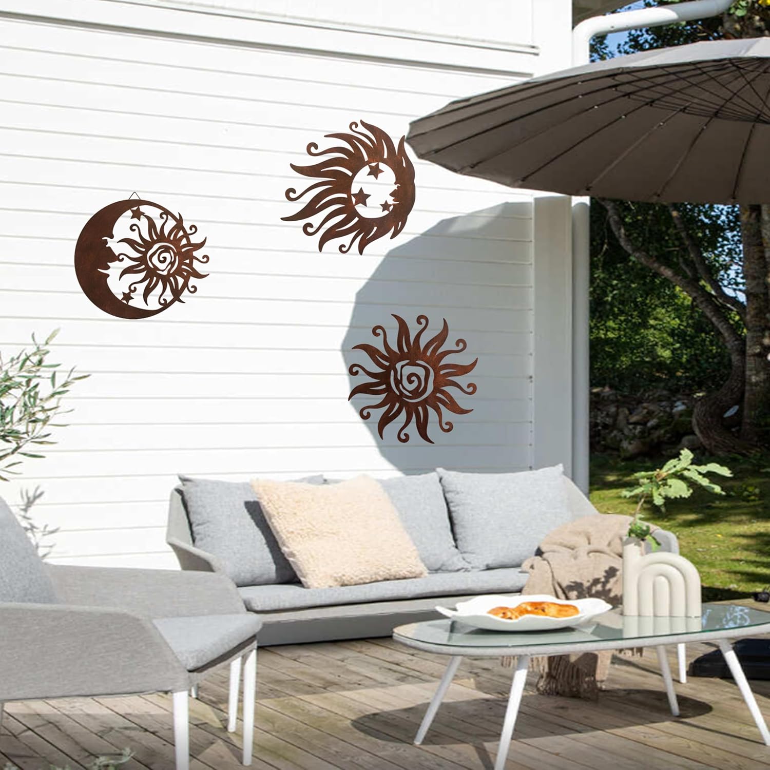 Limygus Sun Moon Wall Hanging, Wall Sculpture, Metal Wall Art Indoor/Outdoor Decor Rust Colored Rust Proof Wall Sculpture - Ideal for Bedrooms Gardens Homes Patios and Farmhouses Set of 3