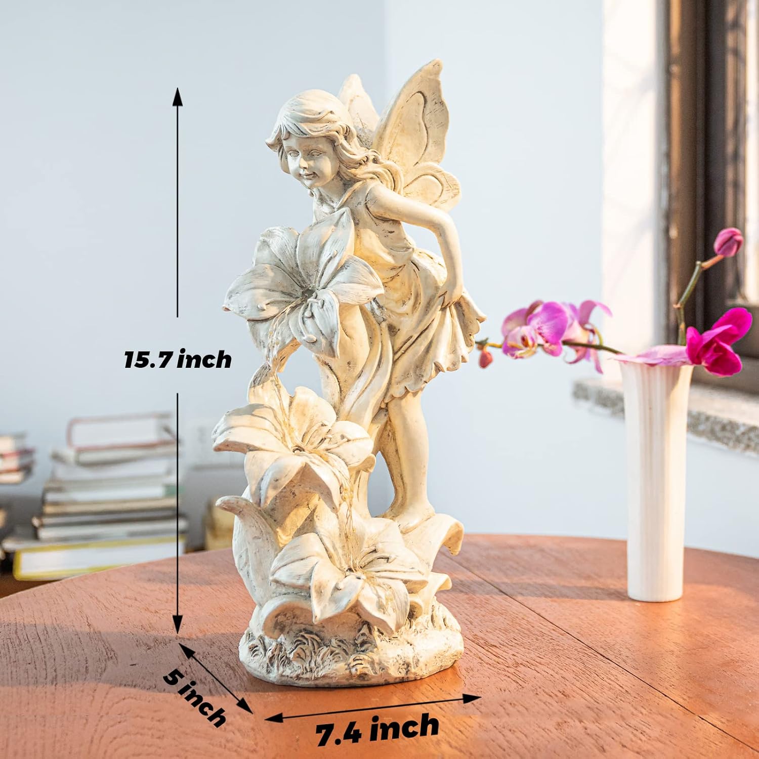 - 【Angel Garden Statue】Fairy angel standing on beautiful morning glory and LED light automatically turns on to emit a warm glow to your garden at night (make this statue charge fully under direct sunlight)