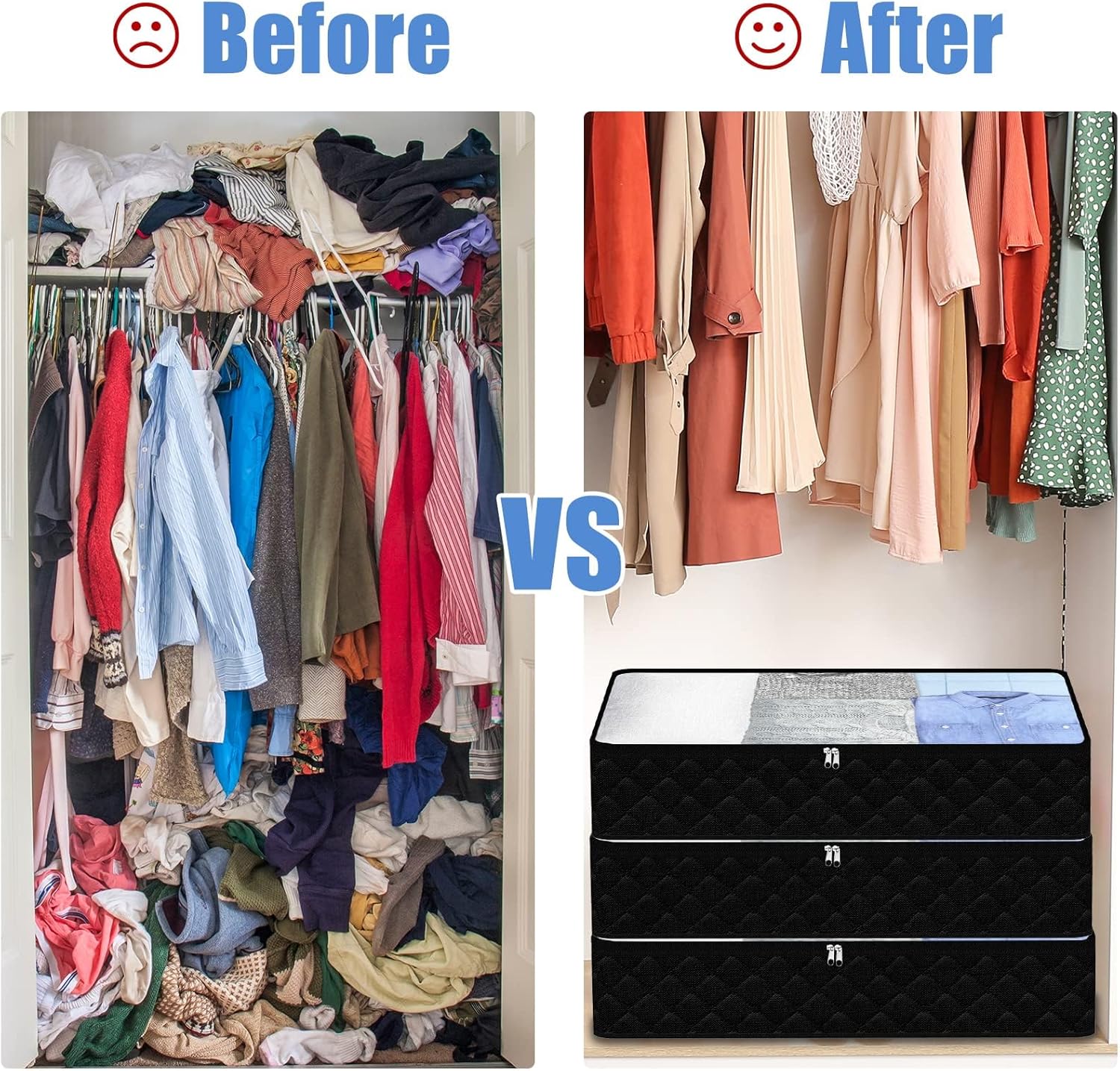 - Seasonal Storage: Enjoy these versatile and attractive storage bags! The size allows them to be used in closet, attic, basement, cloakroom, bedroom, and other thin and hidden places, to protect family seasonal goods such as blankets, bed sheet, hats, scarves, or even holiday decorations and souvenirs. Make organization easy and effective.