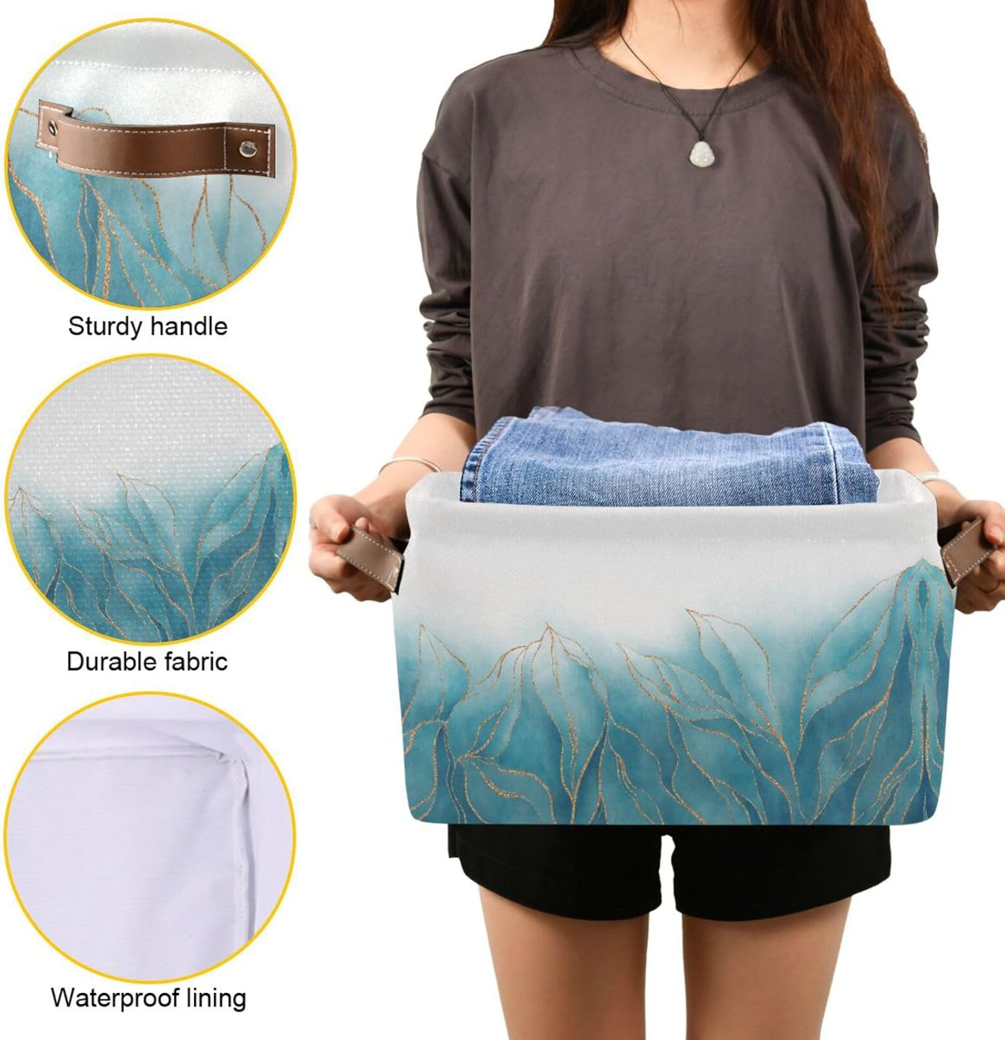 susiyo Storage Baskets for Shelves Closet Storage Bins for Organizing Shelf Nursery Toys, Decorative Linen Fabric Bins Cube with PU Handles 1 Pack,Luxury Blue Golden