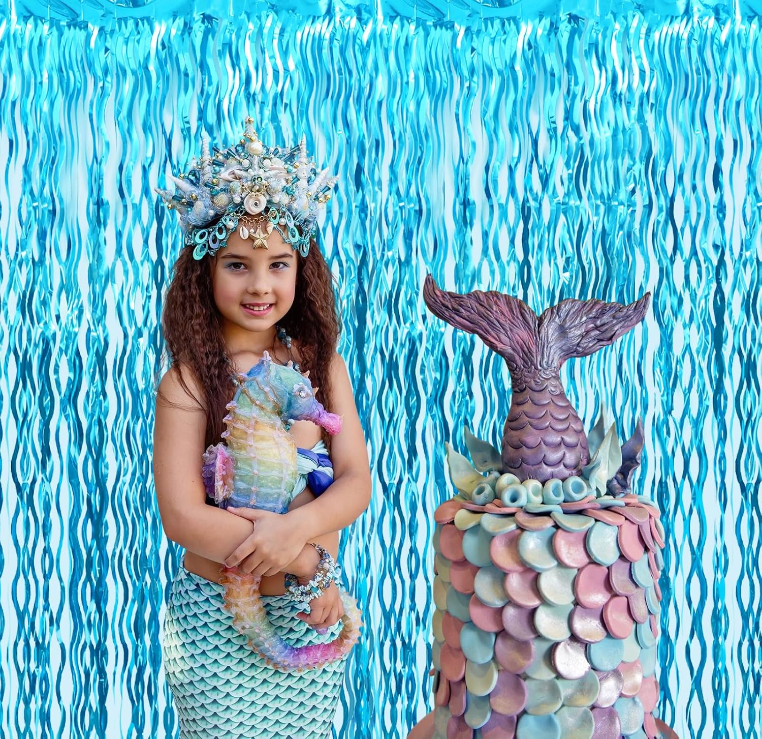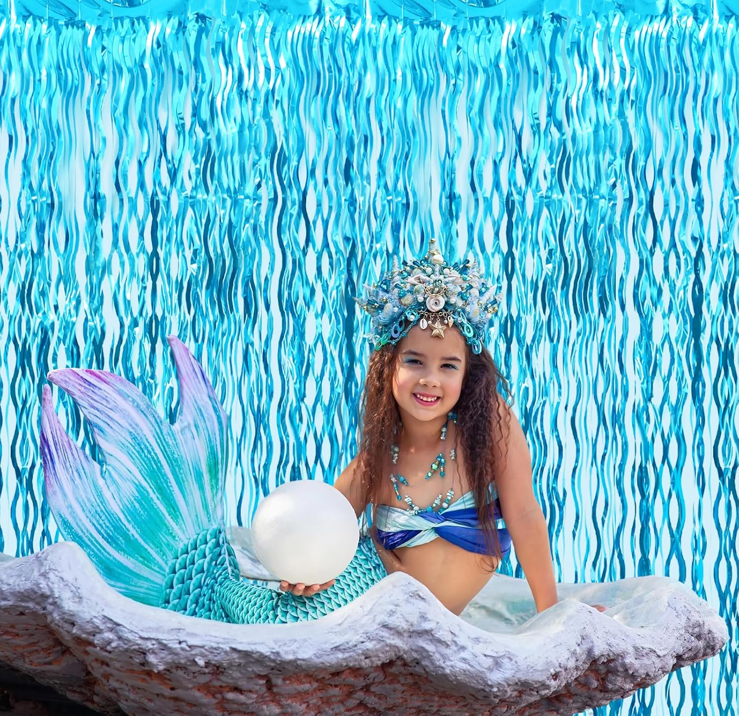 - Package Includes:3 pack wavy light blue foil fringe curtains,3.2 ft x 6.5 ft each,suitable for hanging on a door or coverage a wall fully