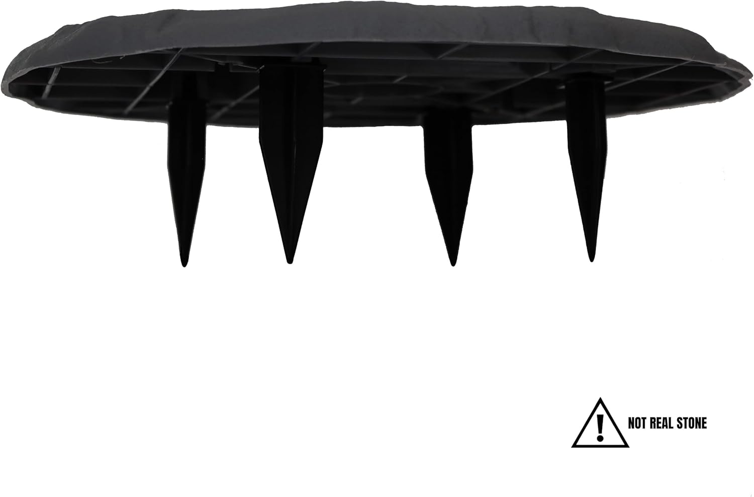 - MADE OF RESIN (PLASTIC) – Both the stepping stones and ground stakes are made of Resin (Plastic). Resin is a more durable type of plastic that is made for outdoor use.