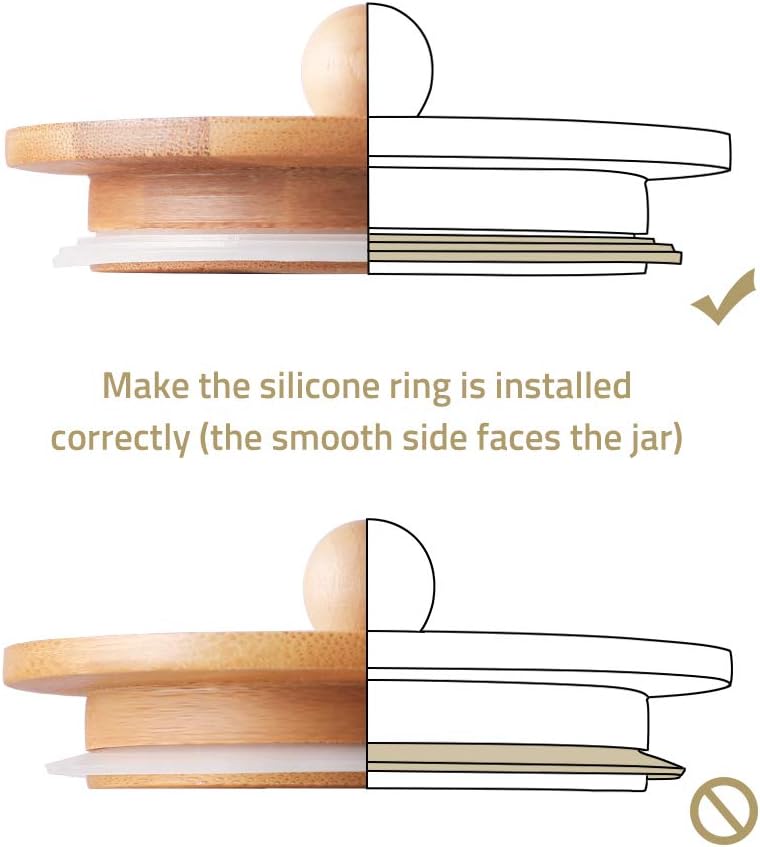 - About Silicone Ring - Make sure that the silicone ring is installed correctly (look at the second picture carefully). The natural bamboo cover has a spherical knob, which is convenient for you to pick up the cover.