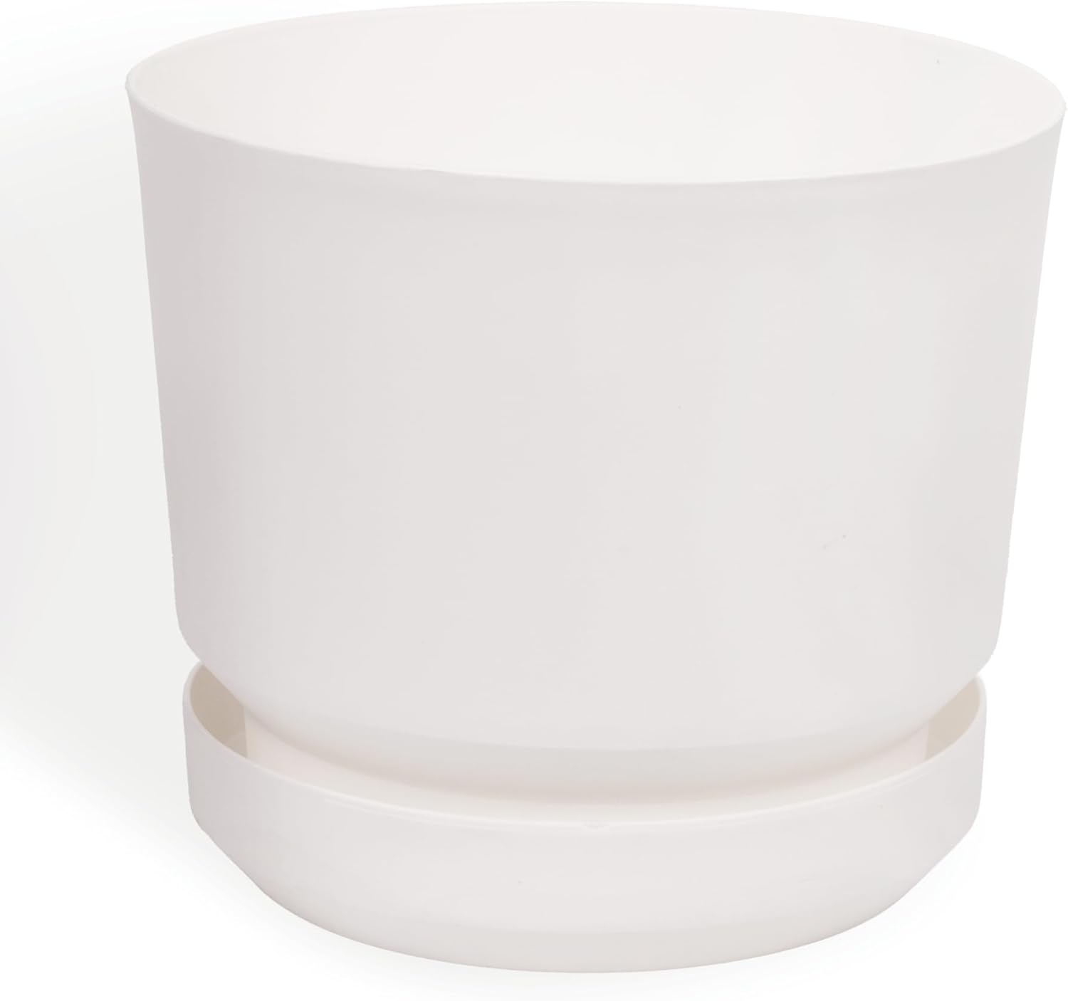 Elly Décor 12 inch Plastic Cylinder Planter Pot with Self-Watering Saucer and Drainage Hole,Lightweight & Extremely Durable, 12"x 12", White