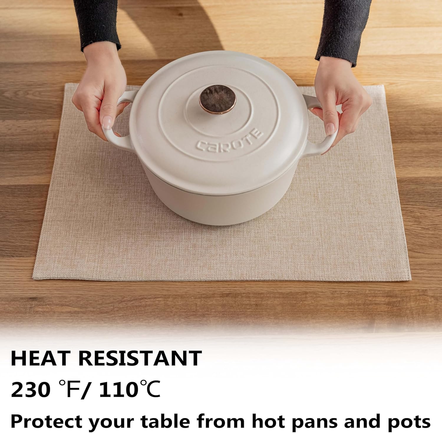 Demetex Linen Placemats Set of 4 Heat Resistant Cloth Placemats Table Place Mats Burlap Plate Mats for Dining Kitchen Banquet, Light Linen