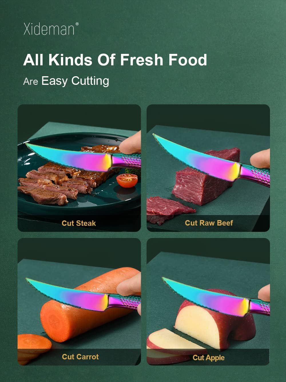 - ALL CAN EASILY CUT: The new two-in-one super sharp serrated knife, double-layer serrated structure, combined with a variety of blades for innovative design. Whether fruit, vegetables, steak or dinner, All CAN EASILY CUT