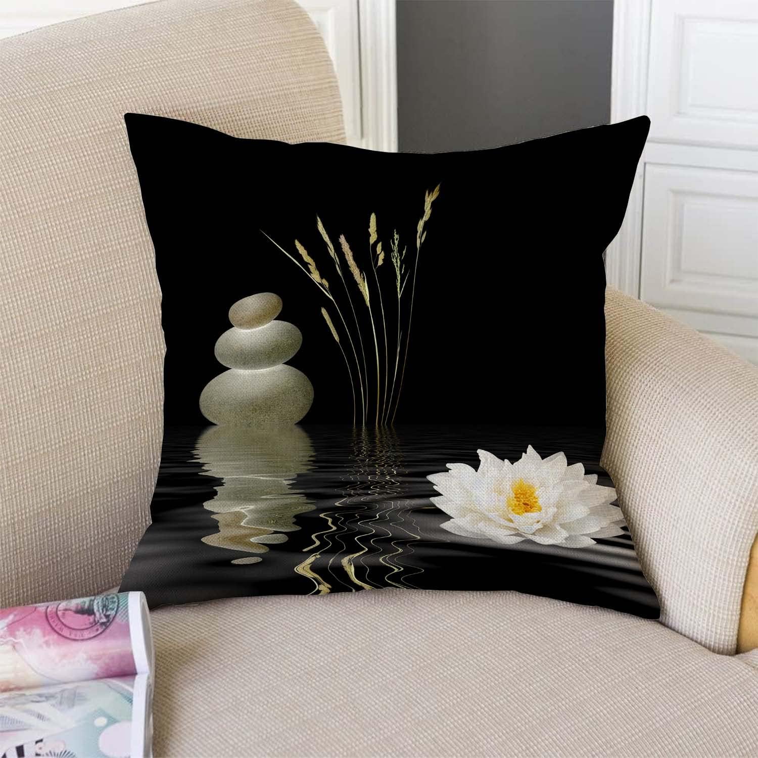 TSSOHU Decorative Throw Pillow Cover Asian Zen Stone, Pillow Covers 18"x 18" Meditation Japanese Lotus Spa Room Decor for Living Room Couch Cushion Bed Indoor Outdoor Home Decor