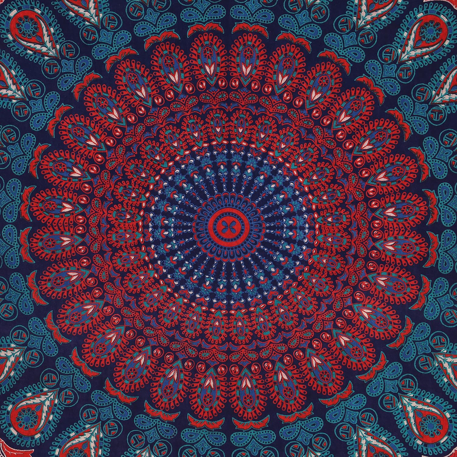 Bless International Handmade Indian hippie Bohemian Psychedelic Peacock Mandala Wall hanging College Dorm Beach Throws Table Cloth Bedding Tapestry (Midnight Blue, Twin(54x72Inches)(140x185cms))