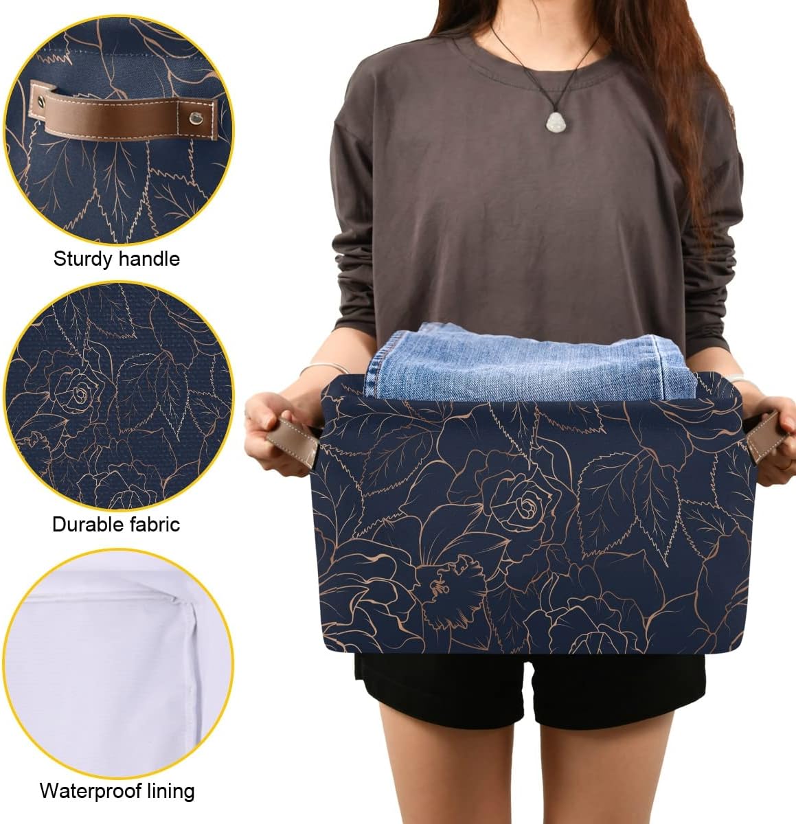 - DECORATIVE CLOSET ORGANIZER: The different patterns of this storage box could decorate any room in your home or office! Brown Faux Leather handles on the sides add a classic touch, able to match most of your home decorations and styles. This storage baskets are not only household staples in helping with your home organizational projects, but also doubles as a charming decoration. To Live Simple. To make your HOME SWEET HOME